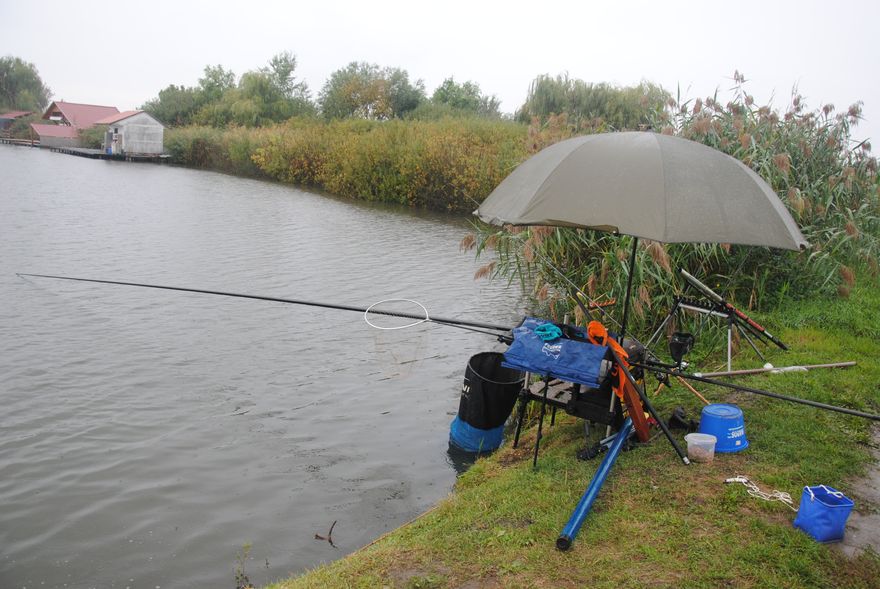 Peca betervezve, botok a kocsiban, miközben az ablaktörlő alig bírja az esőcseppeket seperni az üvegről. Nem bosszankodok, attól nem fog megállni az eső, talán majd később, de az okos telefon határozottan közli, esélyem sincs ma száraz pecára és kész. Akkor még jó is, hogy a nagyobbik ernyő is itt van, na kérem azért 250 cm átmérő csak tán megvédi a sok horgászmotyót..