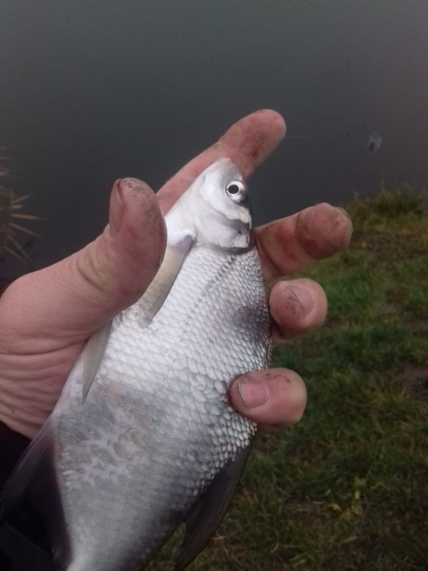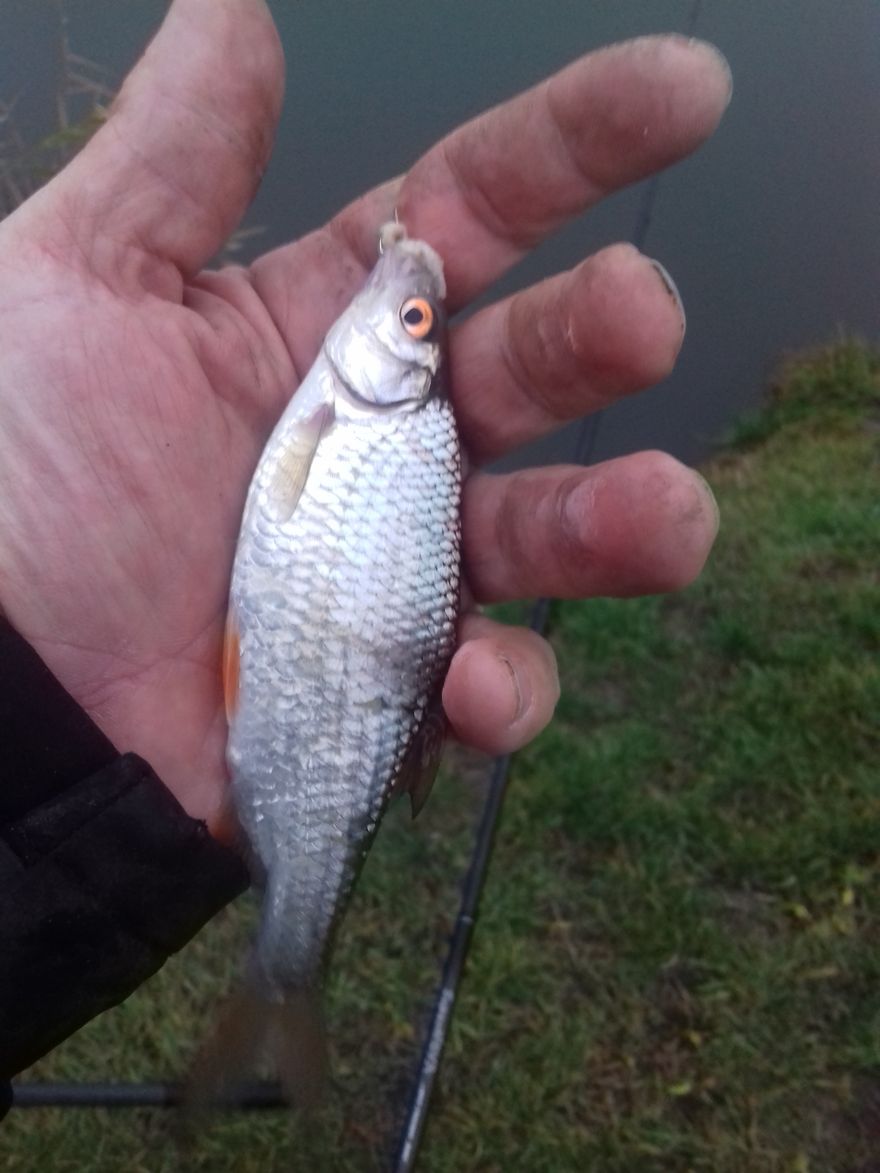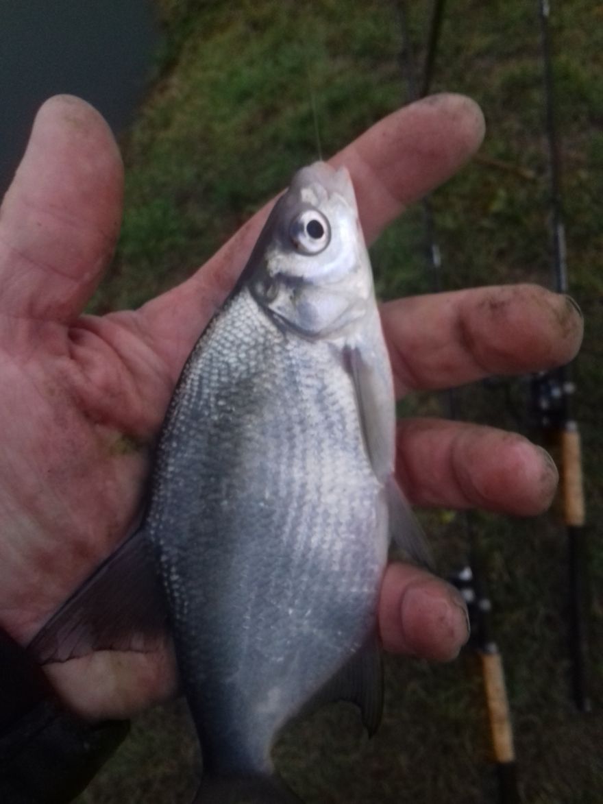 Végre kapás, egy mozdulattal a botnál termek és meg is van első hal. Örülök, már azt hittem idén nem keszegezhetek többet, mert be fog fagyni minden, de amint látható a Kadarcs még nem is fagyott be. Akkor elgémberedett újakkal talán pinkit kéne varázsolni az apró horogra? Hol a horog és hol a pinki, azt se látom… Azért csak-csak összejön csalizás, megy ez már érzésből is, így dévérkeszeg a jutalmam.