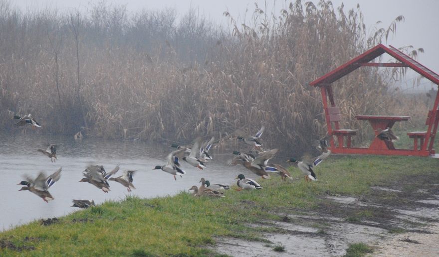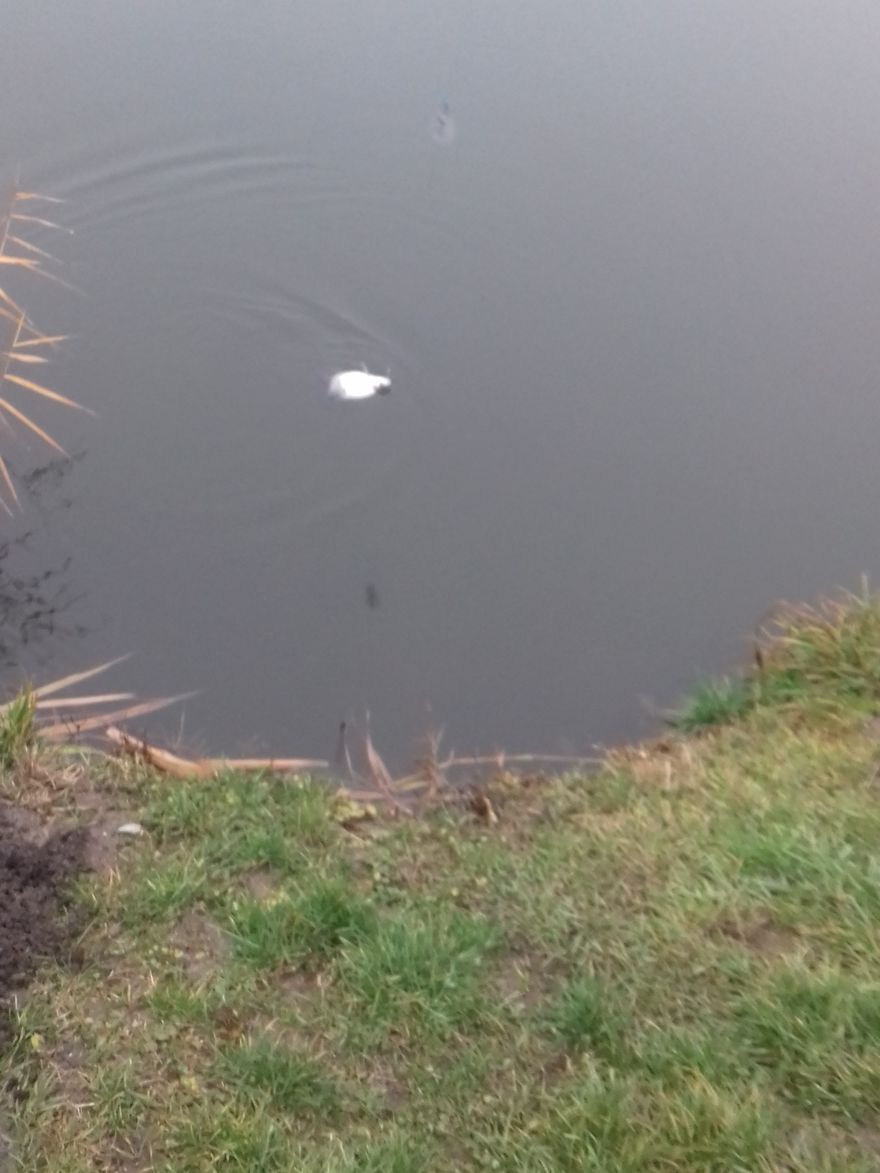 Előbb minimális etetés, elég lesz vagy öt dobás, nem cifrázom túl hideg is van esik is, majd a horogra pinki kerül, lássuk. A kocsiban elhelyezkedek, termosz, némi kaja innen lehet nézni a feedereket, no meg a vadkacsákat akik nagy fürdő partit rendeznek, láthatóan élvezik én meg fotózom őket.
