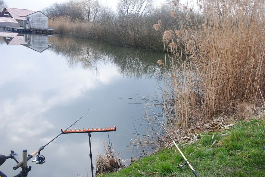 Akkor megint dobjak messzire és ott lesznek? Jó, új etetés új kiakasztás és várakozás majd reggelizés közben jönnek egymás után a keszegek. Valami beindult végre megvannak, bár most pontyot is szeretnék fogni. Mire közeledik a dél végre a nap is kisüt és ez a meleg időjárás meghozza nekünk a pontyot is, így aztán fárasztani kell bár elég sanszos a leakadás, mivel nem methodozok, hanem hosszú előkés feeder felszerelésem van pici horoggal. Azért csak meglesz az a szép pikkelyes ponty, már a tartóban piheg.