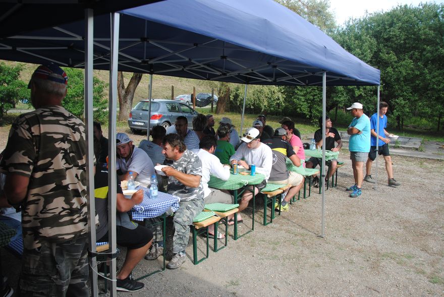 Már pénteken megérkeztünk és készülhetett a haverokkal a csülökpörkölt, versenyhorgász módra. Kellemes evészet vette kezdetét, bár jó páran egy nap edzést már tudhattak a hátuk mögött és komoly tapasztalatokkal várták a szombati tréninget. Mi is elkezdtük Ildivel, elégedett voltam a halállománnyal akár még meglepetéshalak is jöttek, például nekem két folyami harcsa is tiszteletét tette.