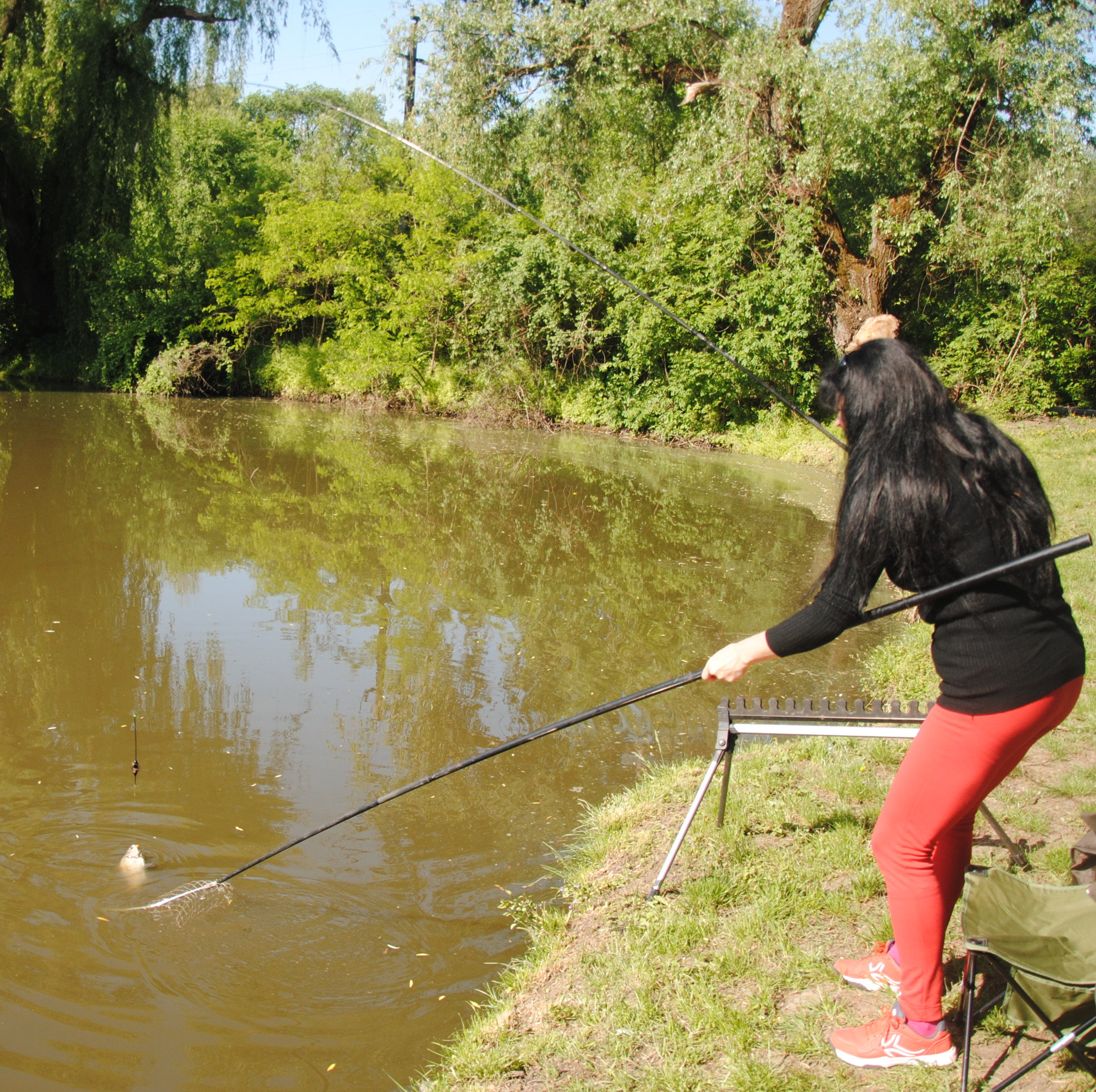 Hátha most is szeretne horgászni, de szólni sem kell már jön is a derékig érő gyönyörű fekete hajzuhatag, csábos-bájos mosollyal fűszerezve érkezik meg a partra, horgásszék előkészítve és már dob is majd elégedetten teszi le a botot és figyel.