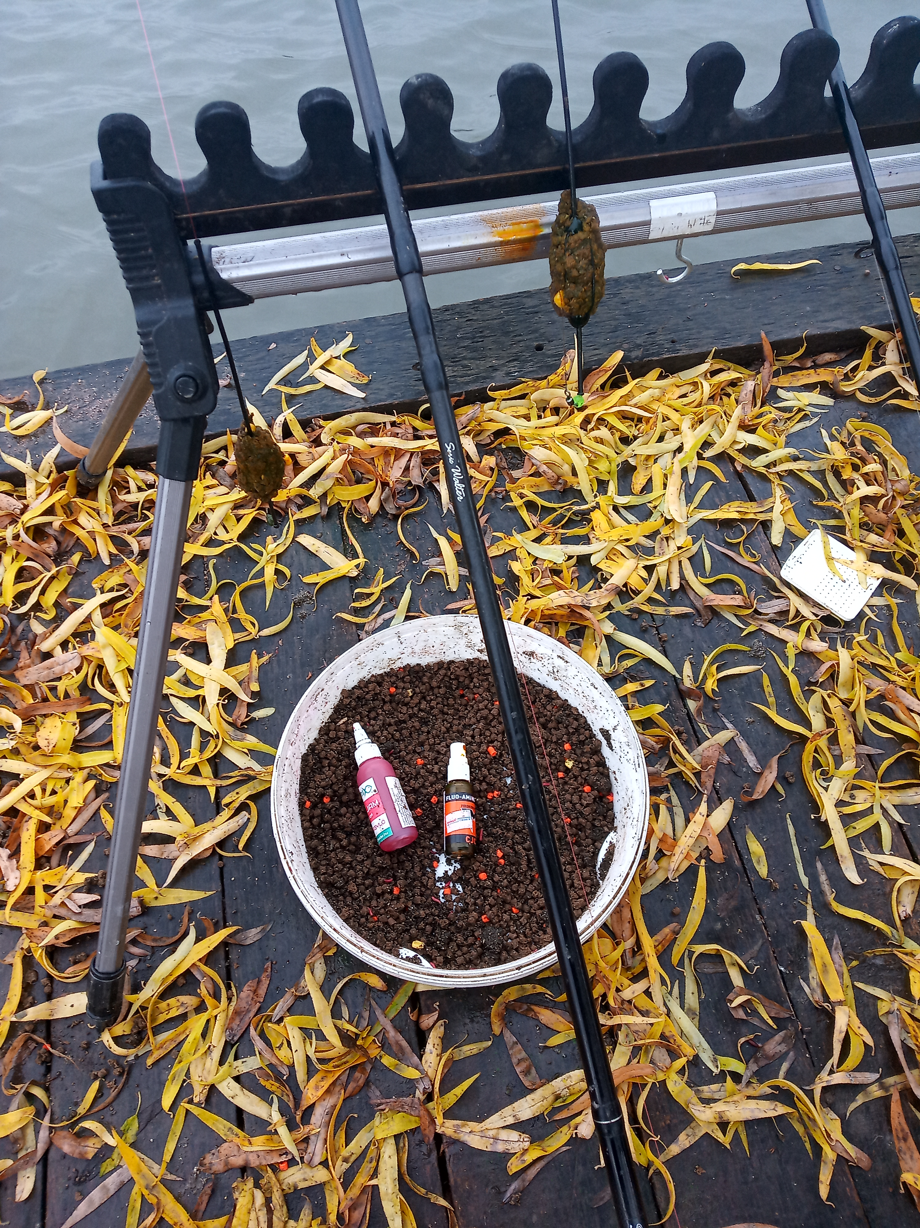 A dobások hajszálpontosak voltak és ott estek le ahol kellett és elegendő mikro pellettel dúsított EA etetőanyag jutott be és képes volt ez a keverék ott tartani a halakat. Ha esetleg egy kis tuning kellett akkor, krilles aromával locsoltam a kosarat. Zsinórban jött még délelőtt 3 tőponty és egy tükrös és nagyon örültem neki, hogy eltaláltam valamit.
