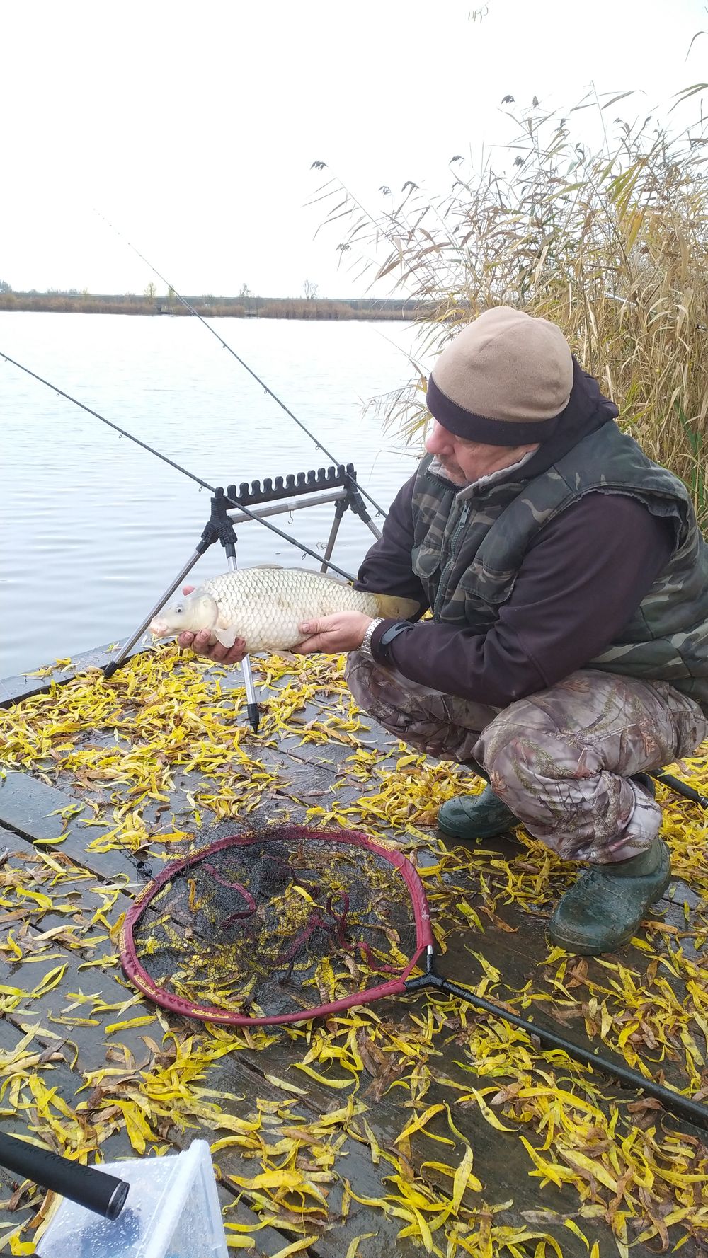 Csontira kapott hosszú előkére bár így van szerelve az egyik botom, de érintetlenek a kukacok, míg a másik methodos ínyencségekkel várja a halakat, amik aztán mégis megérkeznek és erről értesítenek engem a hajló feeder spiccek. Akkor hát fárasztás szélben és esőben, de hisz ilyenkor a horgásznak se kép, se hang nincs a fejében csak a halra figyel… A félig megfagyott kezem hamar felmelegszik és a fárasztás öröme is felpezsdít, szépen jönnek sorban a pontyok úgy látom odaállt egy csapat, elsőre egy fekete pikkelyes ponty teszi tiszteletét.