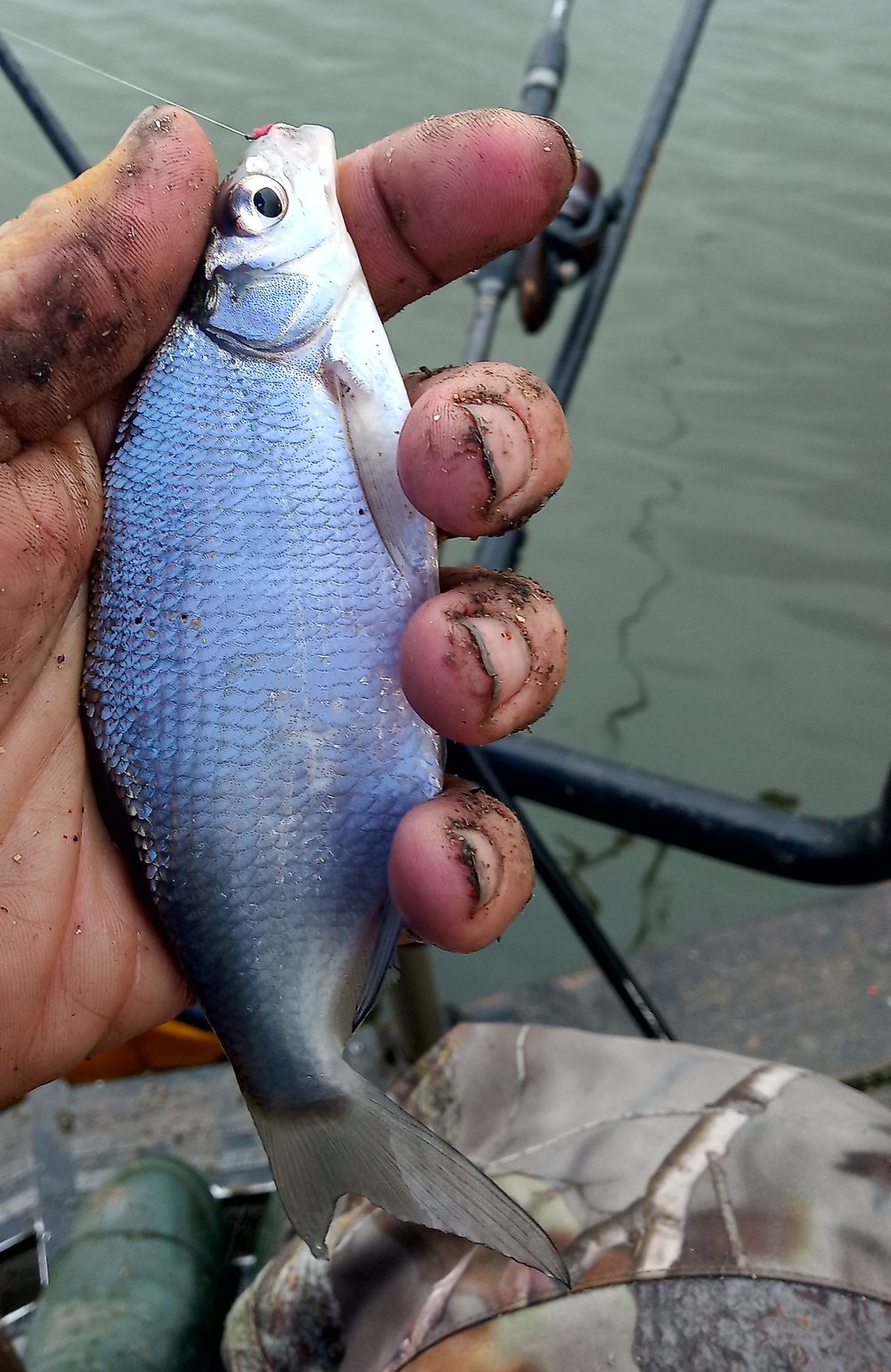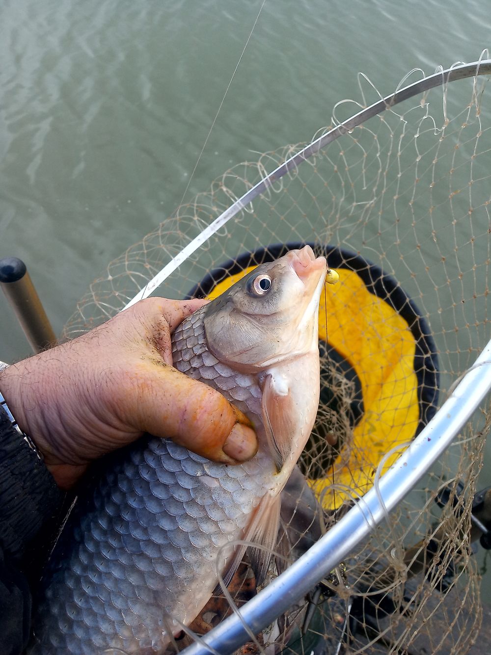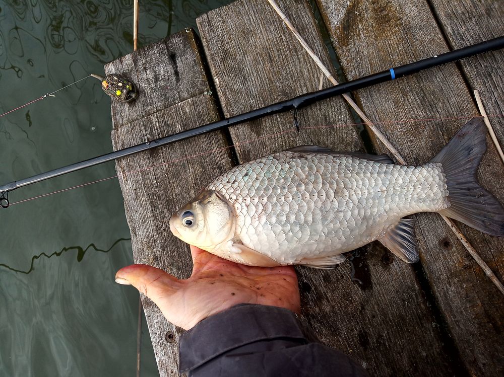 A madármegfigyelésemből egy kapás riaszt fel, a method boton ponty van, végre már szól a fék is persze a vizes botnyél csúszik, én meg elgémberedett derékkal próbálok szákolni és végre parton a pikkelyes ponty!