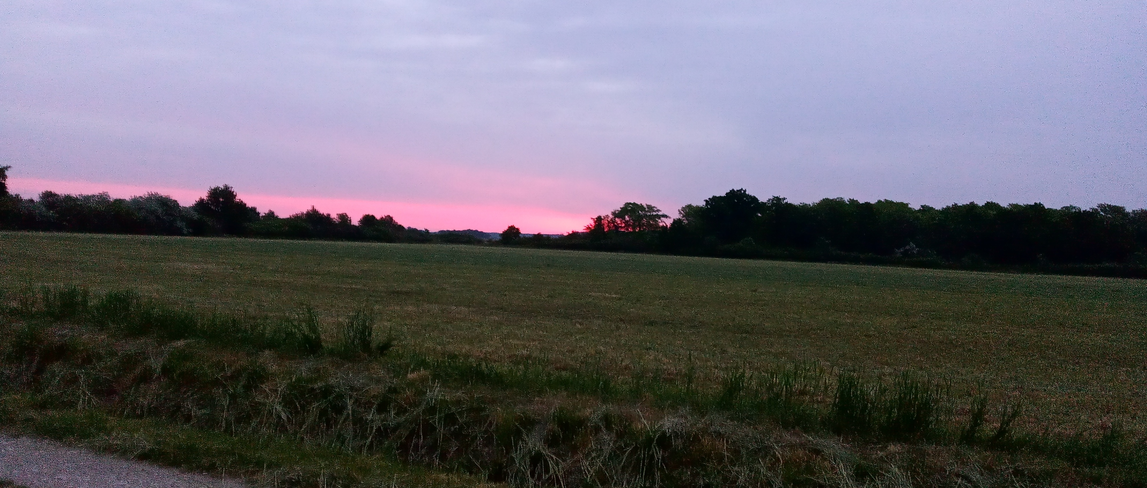 Az ég alja szinte elszégyellte magát a közelgő eső előtt és belepirult, ahogy nézem szép csendben én is részese leszek a tájnak és zaj nélkül beleolvadok a nem létező élő olajfestménybe…