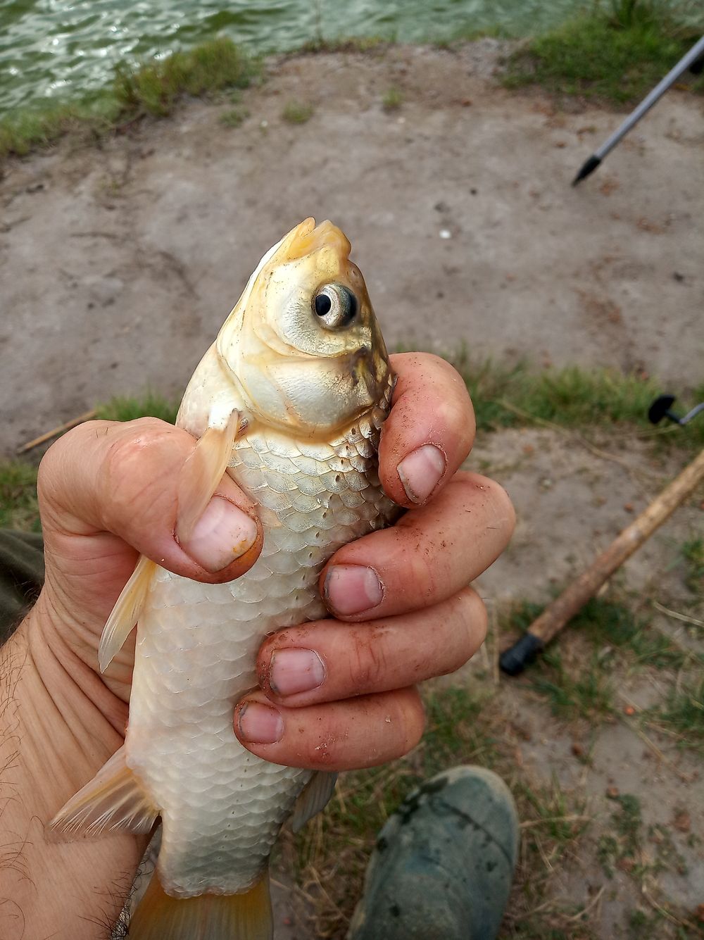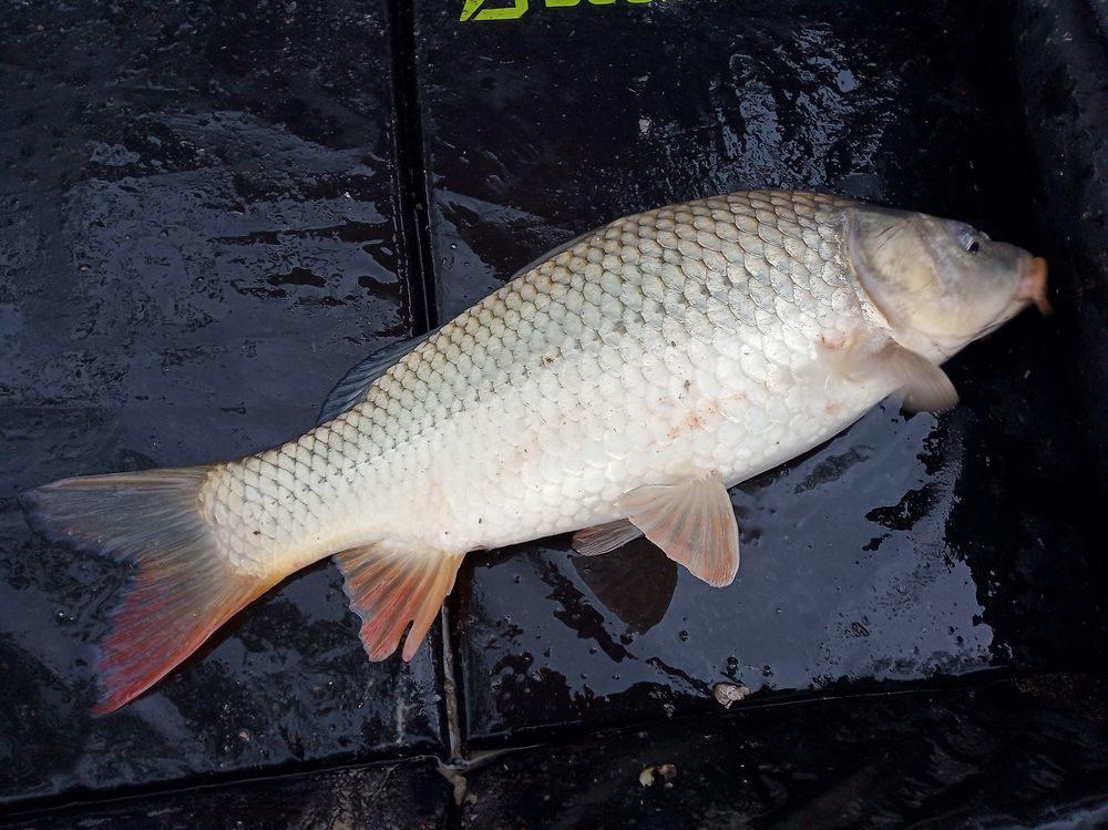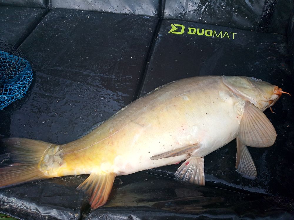 Fék recsegése ébreszt fel a gondolkodásomból, a pontyozó horgászbotom már éppen a víznek indul egy hal hathatós segítségével. Kézben a bot, most akkor küzdjünk meg úgy látom az előbbitől jobban megnőttél halacska! Egy jó fárasztás után szákolok és mire fotózom a tükörpontyot, megáll az eső is végre.