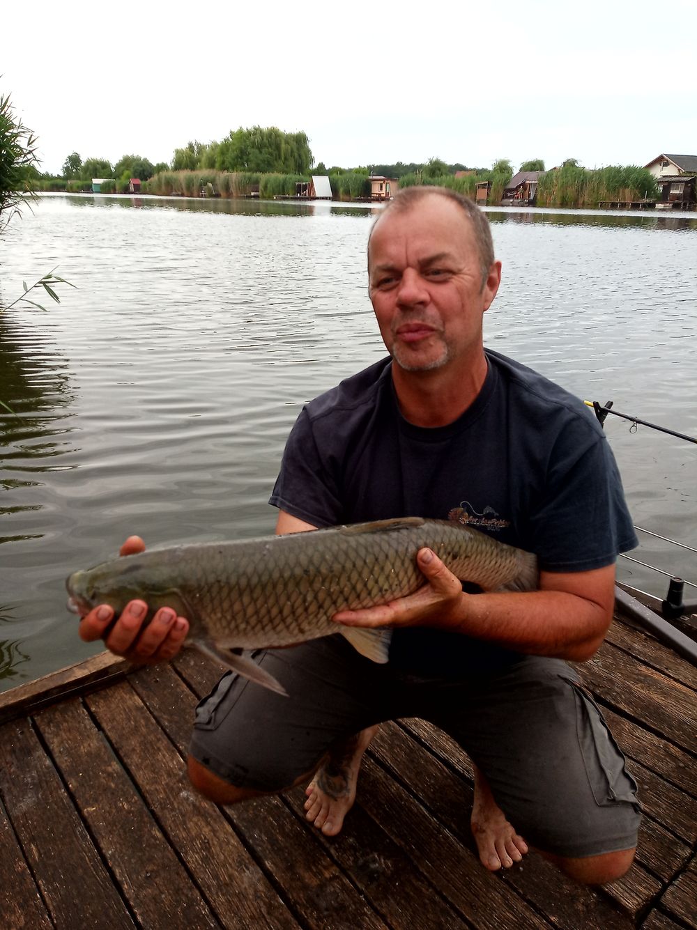 Próbálunk még keszeget fogni, mert kevés lesz az ami van, de mindig ponty és mindig jó hal van a horgon, semmiképp nem érkezik kicsi sütnivaló halacska. Azért csak sikerül összehorgászni még párat, hogy aztán Peti és Anyukája elkészítse nekünk. Meg sem lepődünk beszélgetés közben, hogy a botomat egy amur úgy meghajlítja, hogy csak na! Szóval még a mai napba egy jó fárasztás is belefér? Bele hát, én fárasztok Éva néni szákol, egész kis családi csapat van stégen.