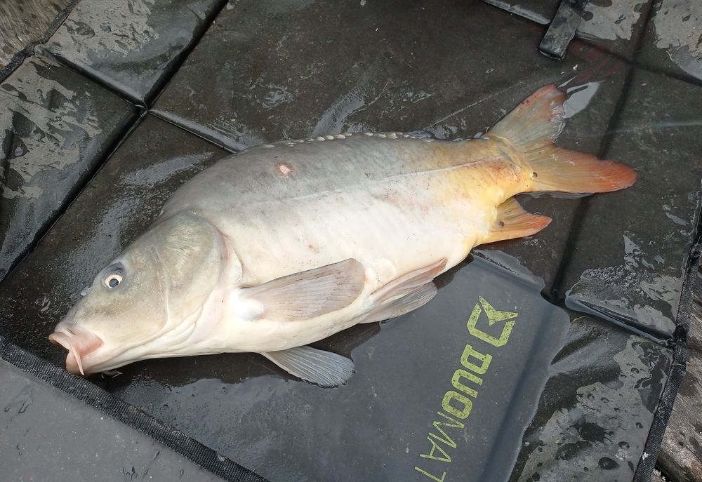 Kísérletezek egy kicsit, akármilyen színes pellet és etetőanyag a kosárba majd nem történik semmi, de az ég egy adta világon semmi.. Bezzeg ha pellet a kosárba, gumigyűrűbe ugyanezen pellet, máris van kapás! Most megérkezett a ponty is rendesen szól a fék, örülök nagyon. Kicsit hadakozik még a bokor előtt, majd megszákolom, egy tükörponty látogatott meg.