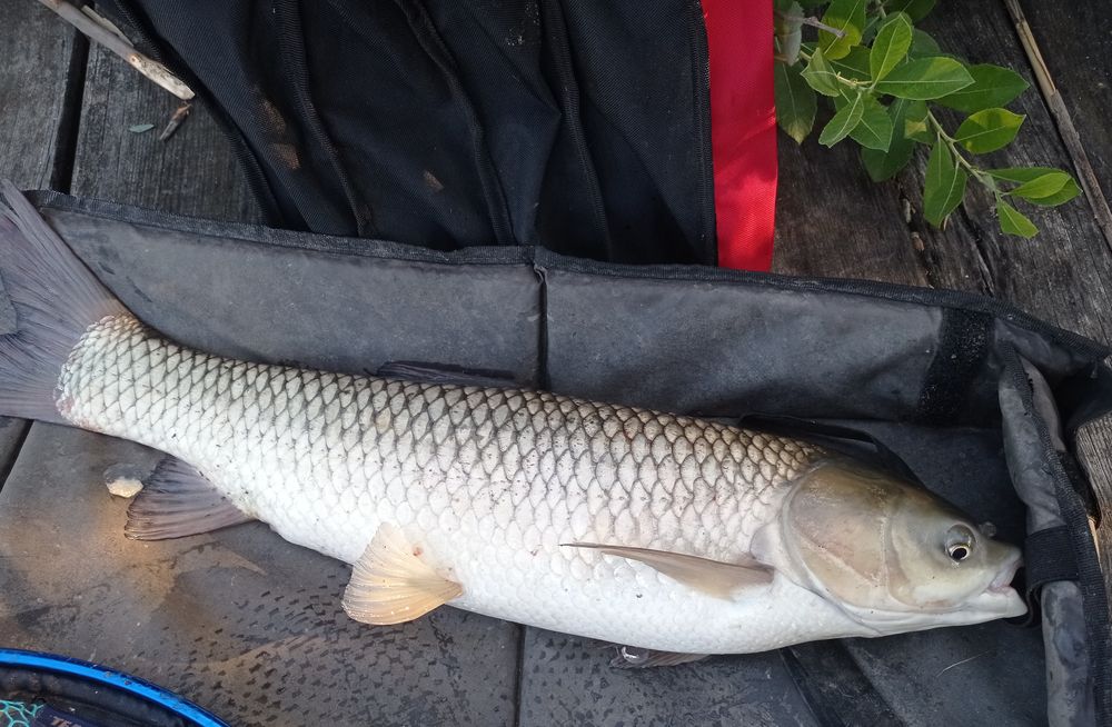 Ijedten kapok a 3,60-as bot után, elindul a visító fékkel együtt a bot is!!! Bevágok, de hagyja magát a hal, mégis milyen súlyosnak tűnik, megjegyzem félhangosan a hajnalba kicsi hal… Na igen, megérkezik a stég elé a hal és egy ezüst torpedó villan át a Kadarcsi víztükrön, amur a horgon! Természetesen betör a stég alá és a botom spicce is ott van már, majd miután kifordítom, szákolom. Még a szákfejből is kiugrana ha hagynám, csoda hogy a nyél bírta az akciót... Egy kis verekedős, matracos, horoghajlítós, ficánkolás majd fotó és mehet tovább éltető elemébe.