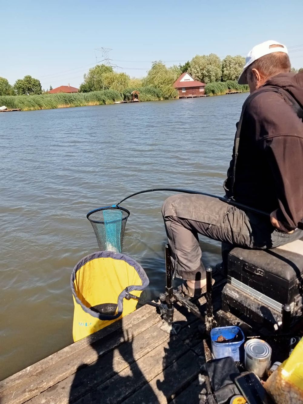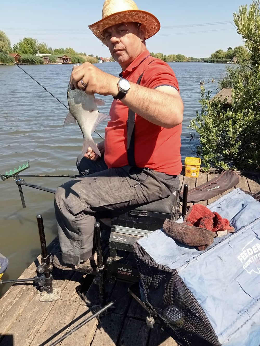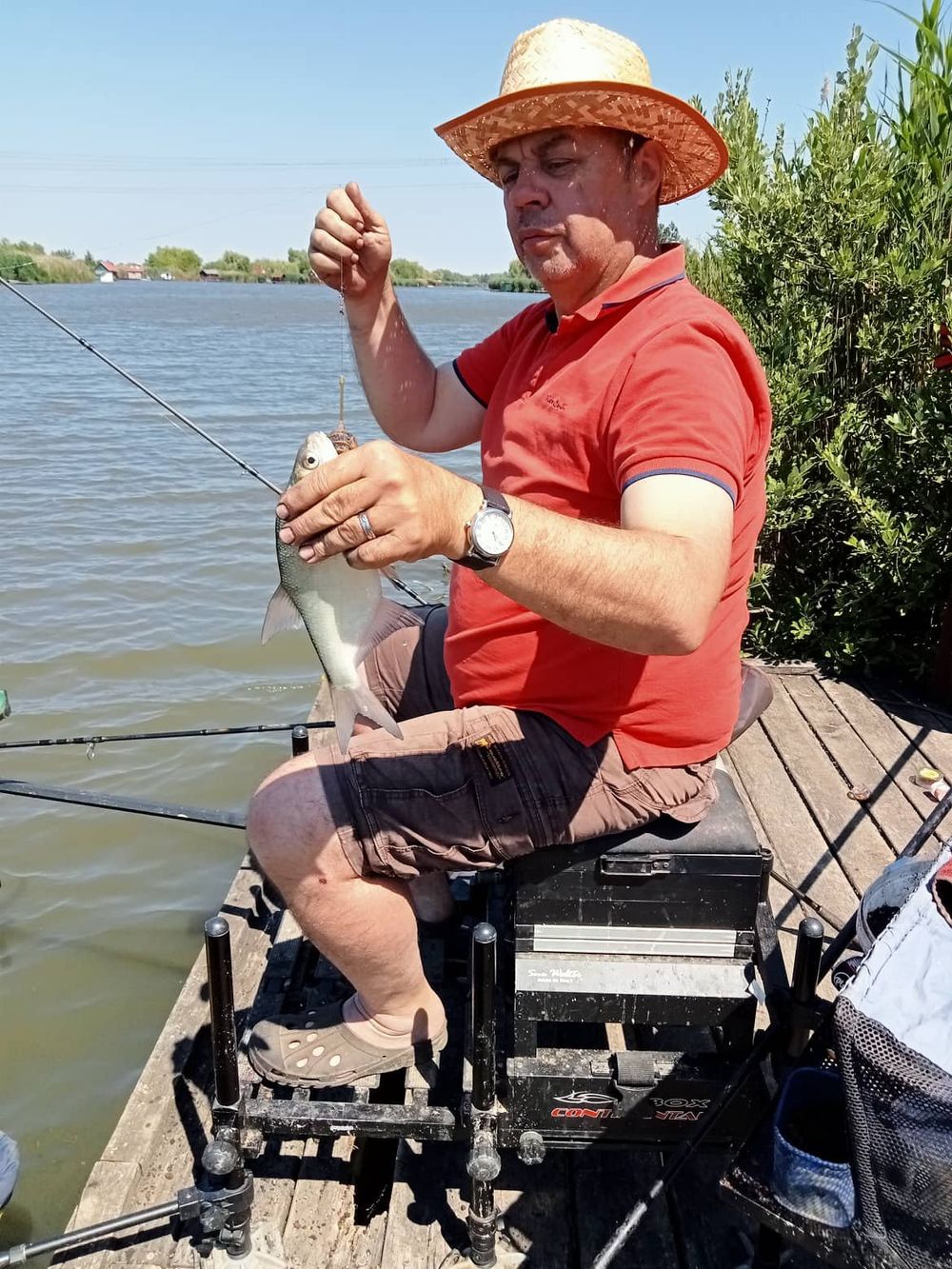 Most már tényleg meleg lett, átvedlek nyári ruházatban szalmakalap fejbe és peca ezerrel. A napsütéses melegben a keszegek kezdik el csipkedni a csalikat és a szép dévér állomány mutatja magát.