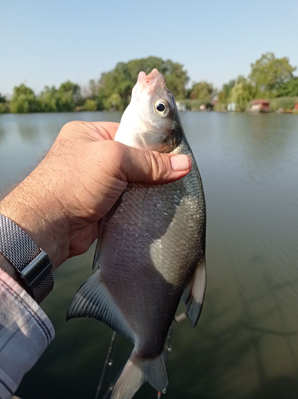 Jönnek a keszegek Csaba botjára és nevetjük közben a halak ízlését mert a nyerő kombináció fokhagymás pellet, áfonya aromával meglocsolva… Hát na, ha ezt szeretnék ezt kapják… Jön még két potyesz nekem és Csabához beállnak szinte libasorban a keszegek, nagyüzem van nem unatkozunk.