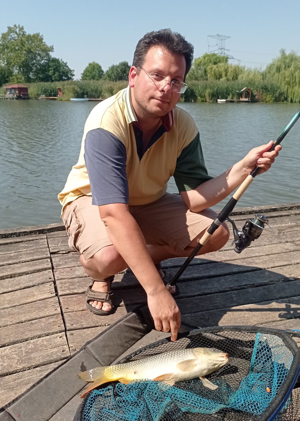 Még jönnek halak Csabának is nekem is, néha több keszeg, néha ponty, de a napot végül Csaba új botjának hajlása zárja és szép pontyot merítünk…