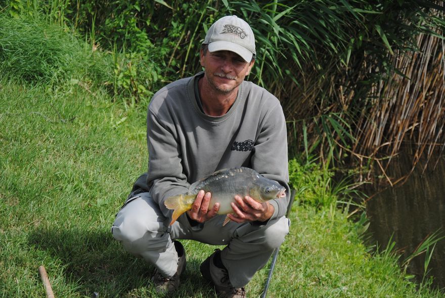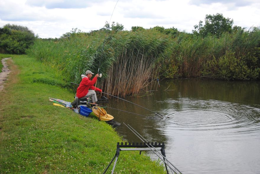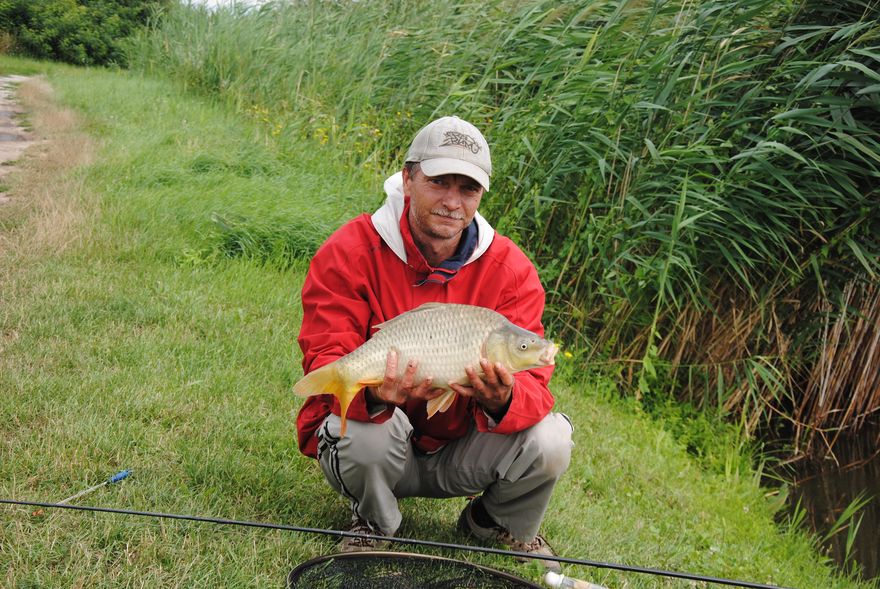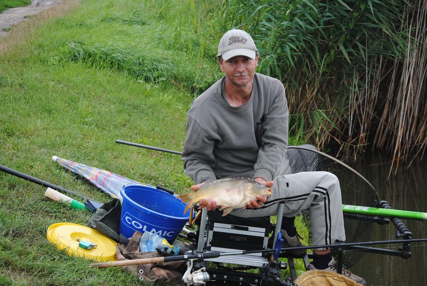Megérkezünk és kezdődjék a peca, Zoli a sarokba ül ahol lehet rakózni, matchezni, feederezni szinte bármit, van nádfal is, bokor is bőven. Én gondoltam az egész napot végig rakózom, legjobban ezt szeretem művelni. Jól kezdődik a reggel a nagy távolságra eldobott feeder bot egymás után fog pontyokat.