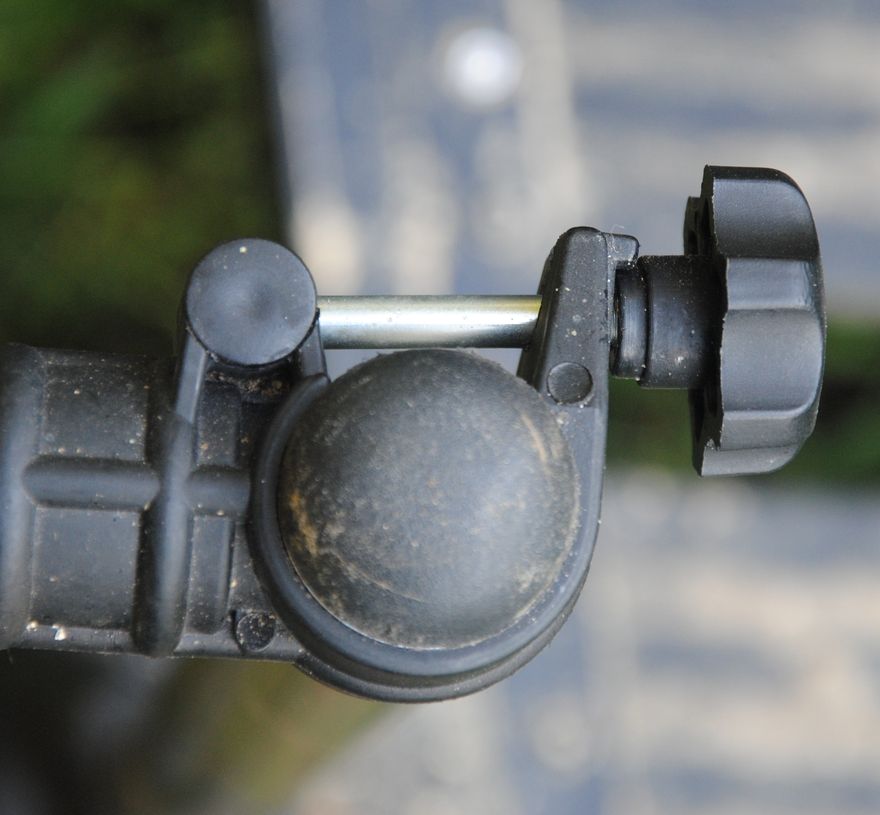 A tartozékokat csak felülről lehet rádugni a lábra? Ugyan, dehogy… Simán oldalról ráugrasztjuk a pipát és már rögzíthetem is így: