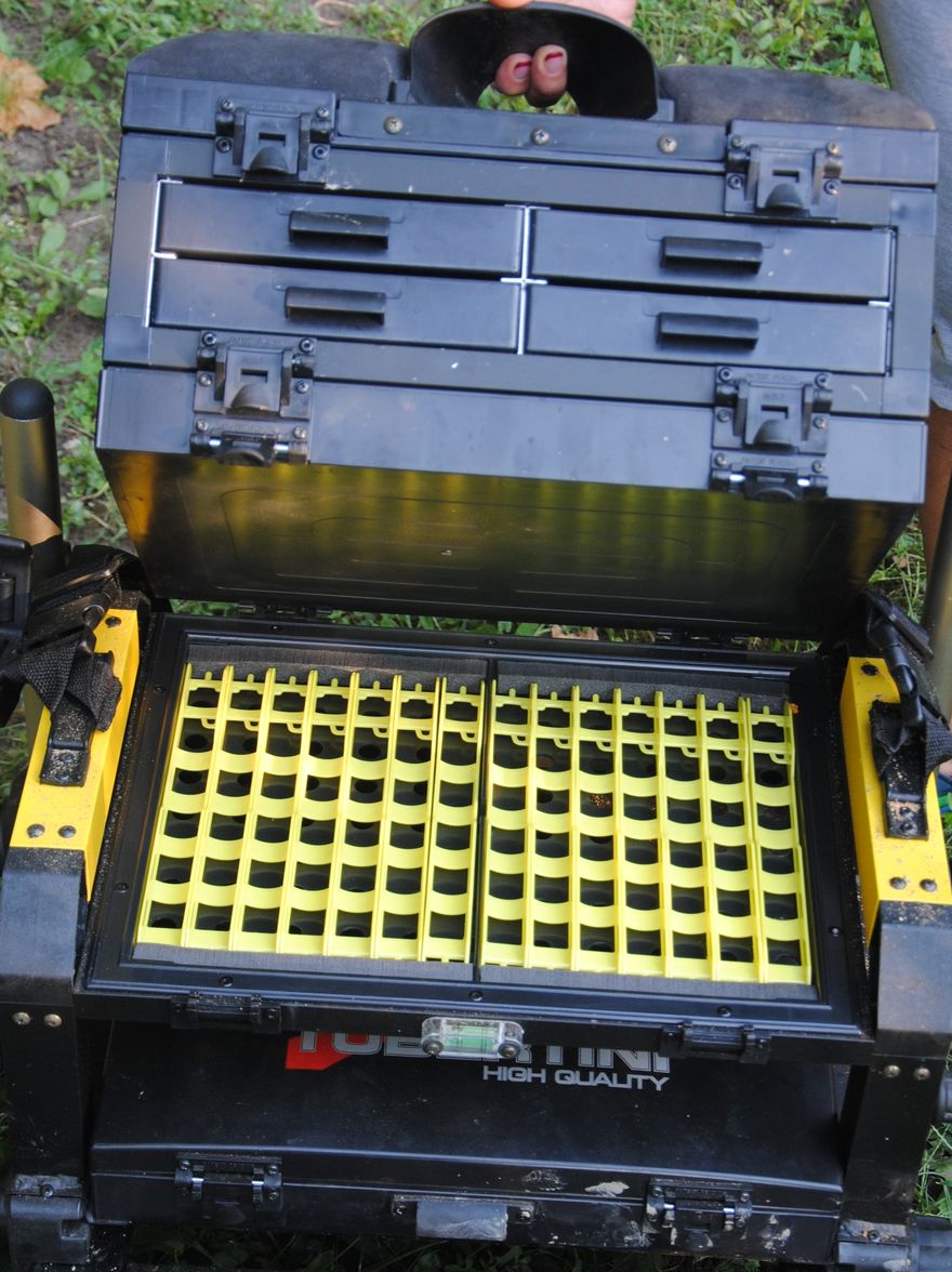 Akkor most már vége volna a tárolóknak? Csak gondolja a horgász, van itt még mit nyitni kérem. Kivehető koffer is jár hozzá, akár láda nélkül is elindulhatunk a kofferral egy minimál pecára, csak nyugodtan, minden elfér benne ami kellhet.