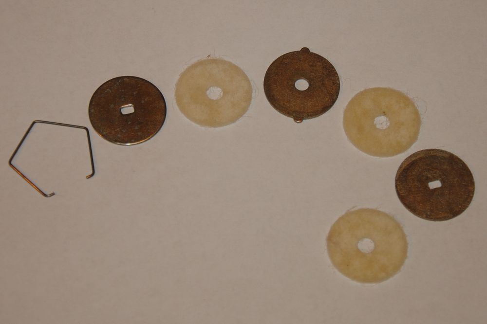 A fém dobot leveszem, majd a zéger gyűrű kipattintása következik. Most jönnek a lamellák egymás után a fémek és filcek sorban. Három darab filcből készült lamella csúszik három fém lamellán váltakozva, melyek kellő finom olajkenést kaptak, csak pont annyit ami elég a jó minőségű fék működéséhez. Hibátlan fékrendszer található az orsóban, innen már nyugodtabb is vagyok ha szépen finoman recseg a fék, sok baj nem lehet az orsóval.