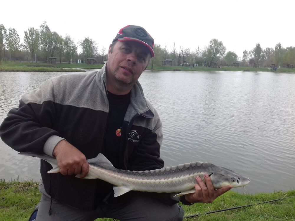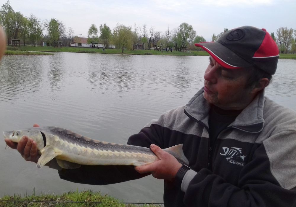 Most egy kis változtatás, szétnyomott kukorica és egy kis giliszta darab együtt párban. Gyönyörűen elhajlik a botom és megint egy jó hal húzza a zsinórt, amiről nem tudjuk mi csak várunk Zolival, a hal meg sétál fel és alá.. Végre emelem a halat és megint tok, de örülök neki, mivel ha nem eszik a nagy ponty, akkor legalább a tok igen.