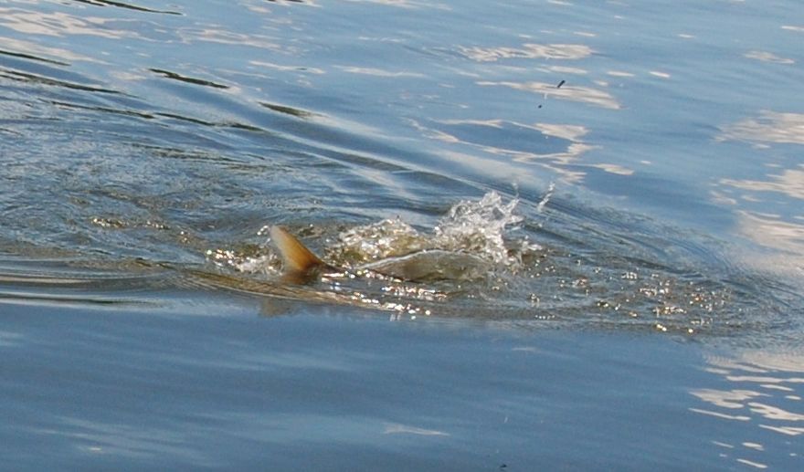 Azért az adrenalin szintem az egekbe szökik az ismeretlen lény a víz alatt elindul balra és megállíthatatlannak tűnik!! Bedugom a bot végét a víz alá és várom a szakadás pillanatát, hisz lehet érezni „koppol” a gumi mindjárt vége a játéknak és szakadni fog a 0,13-as előke! Nem nem szakad, akkor hát felveszem a kesztyűt tisztelt hal, mérkőzzünk meg!!
