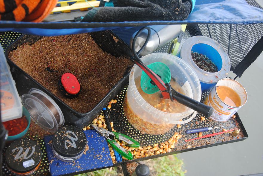 Keszeges etetőt kapnak, most inkább félkezes gombócokkal dobva etetek, majd ráhorgászom és még némi kukoricát is csúzlizok be, hátha jön „meglepetésvendég” is ma.. Nem vagyok elragadtatva a kapásoktól, ha csemegekukorica van a horgon, nem is kell a csalim. Szép lassan el kell felejtenem a letett előkét is és be kell állítanom érintőre a cuccot és csak csontival horgászni, talán így lehet ütemesen keszeget és kárászt fogni, bár nem pont egy pörgős keszegezésre jöttem.