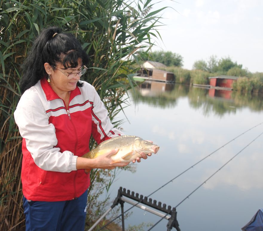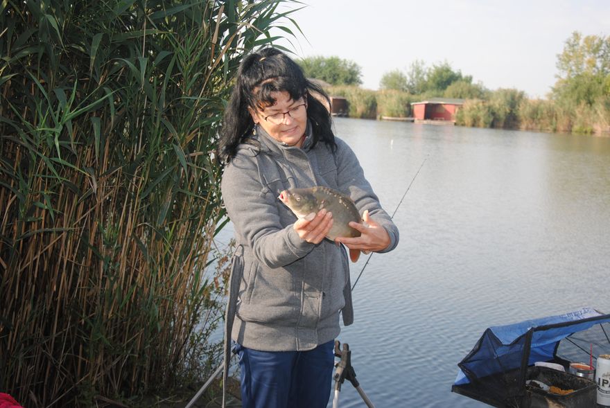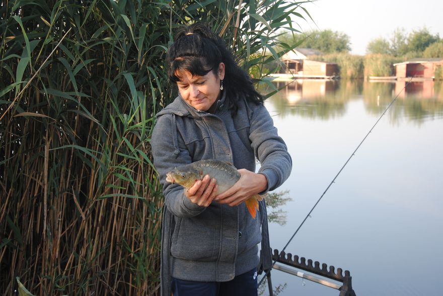 Sietek, pakolom Ildi botjait etetőit csalikat, had horgásszon csak ráfér a rengeteg napi 14-16 óra munka nem kevés, ma csak horgásszunk! Hamar bejelentkeznek a pontyok Ildinél én még be sem dobtam, közben persze a játékos verseny elkezdődik 1-0 aztán 2-0 és így tovább, lemaradok lassan ha nem horgászok.