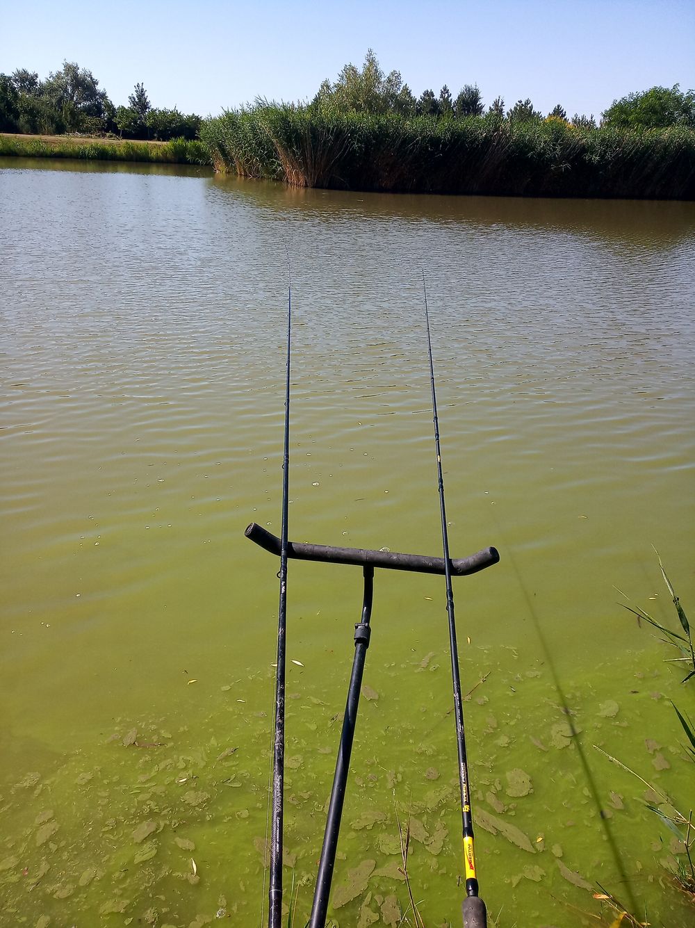 Végre nekem is van halam a nádfalhoz erőltetett hosszú előkés módszer beválni látszik, de nem kicsit mert adni kezdi a halat. Még megtörténik az is, hogy míg fárasztok a másik bot is elindul és azt Ildi veszi át, szóval esemény az van!