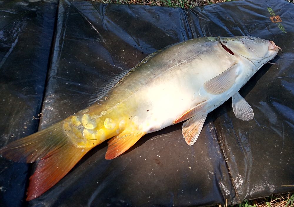 Közben más módszer is működik és a matchbottal éppen tükörpontyot fárasztok, ami hajlandó volt felvenni a piros kukoricát, tehát a match is működik. Bedobás újfent, lássuk ott vannak-e még a pontyok?