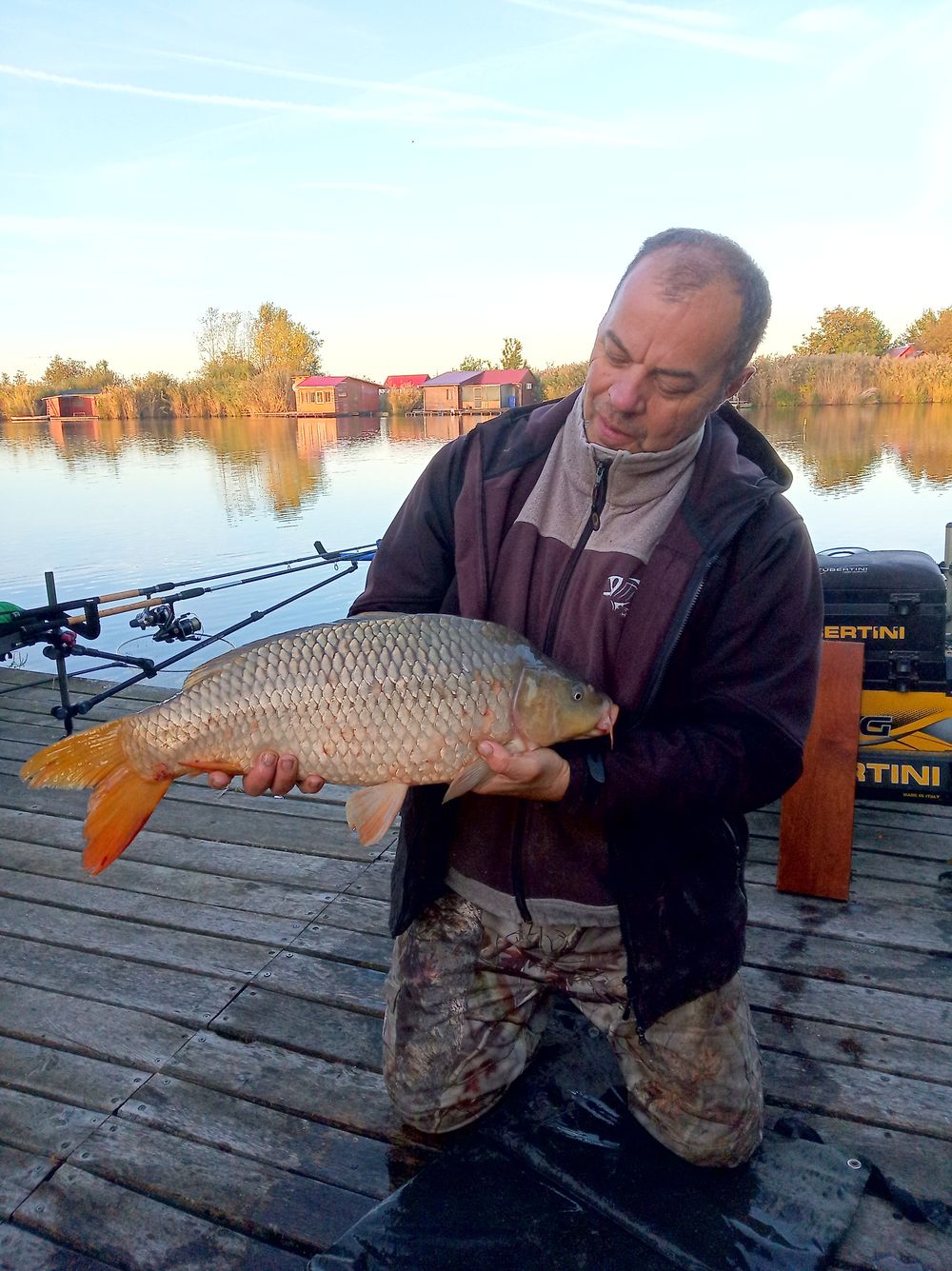 Most a methodos boton van soron hisz bekaszál félreérthetetlenül, de nem nagyon értem a dolgot nem hagyja magát a hal, sokadjára sem engedelmeskedik nekem csak a megbízható első fék kattog megnyugtatóan, tudva tudván a felszerelés hibátlan, nekem kell tudást párosítanom hozzá. Közelít már a stéghez, jó nagy szája van amint kortyolja a kábulást okozó levegőt. Elsőre nem sikerül megszákolni, másodjára kifordul a szákfejből, harmadjára van benne csak, ez kemény menet volt és gyönyörű a hal, örülök.. Fáradtan elúszik, azt hiszem ilyen kellemes hideg reggelem még nem volt idén…