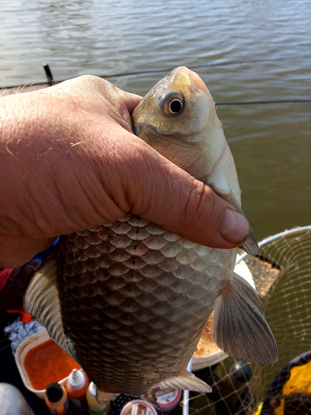 Tibinél is megjelennek a halak, jönnek nagy kárászok szép keszegek, Kadarcs mutatja magát, mint mindig.