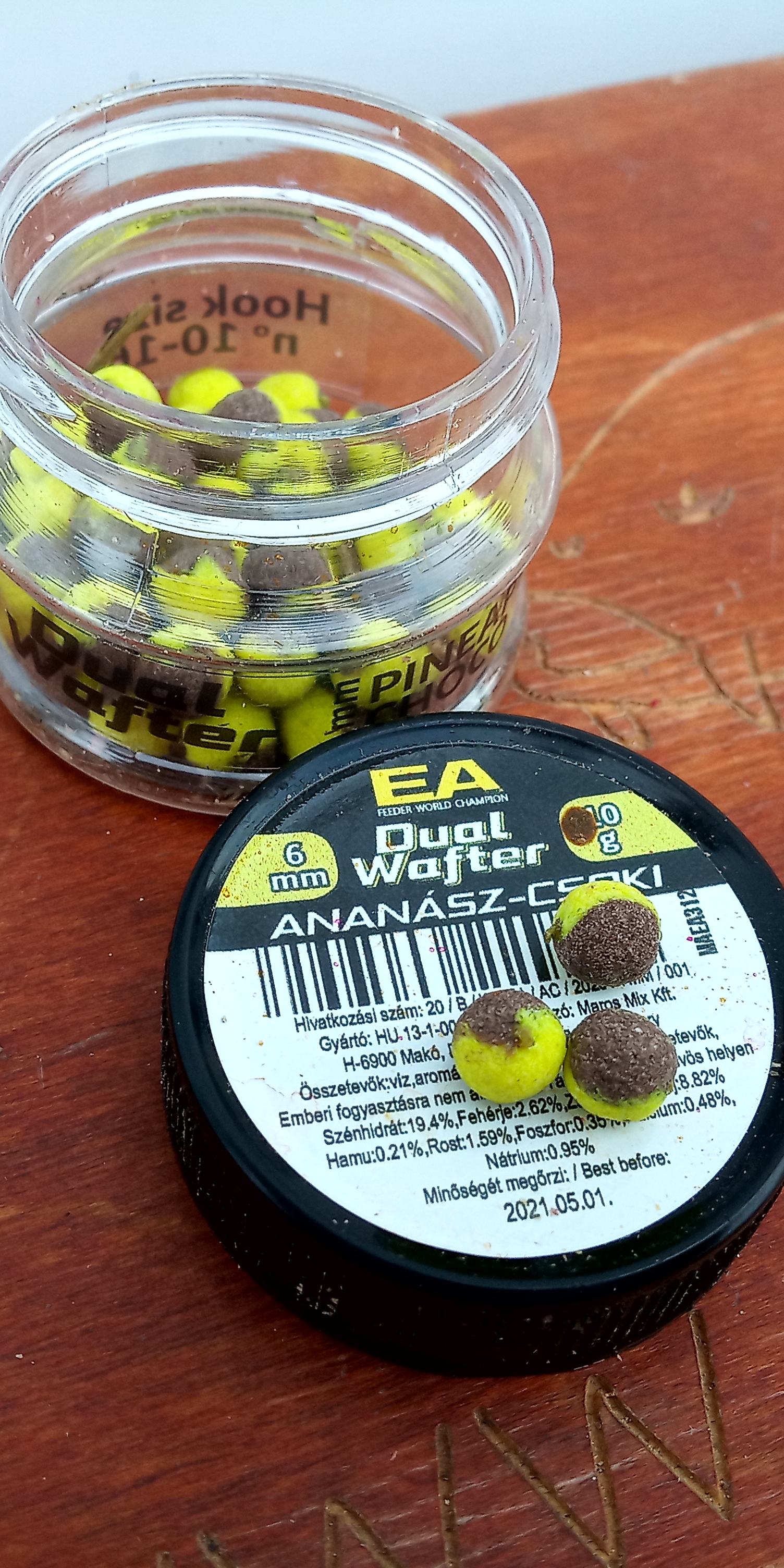 Már az előző horgászaton próbáltuk, de akkor én inkább a Feleségemre bíztam a próbát és elmondta az én Drágám az ananász-csoki nagyon jó… Rendben Ildi, azt favorizálom és igenis tényleg eltalált formula, mert eszi húzza a mindössze 6 mm-es kis golyót.