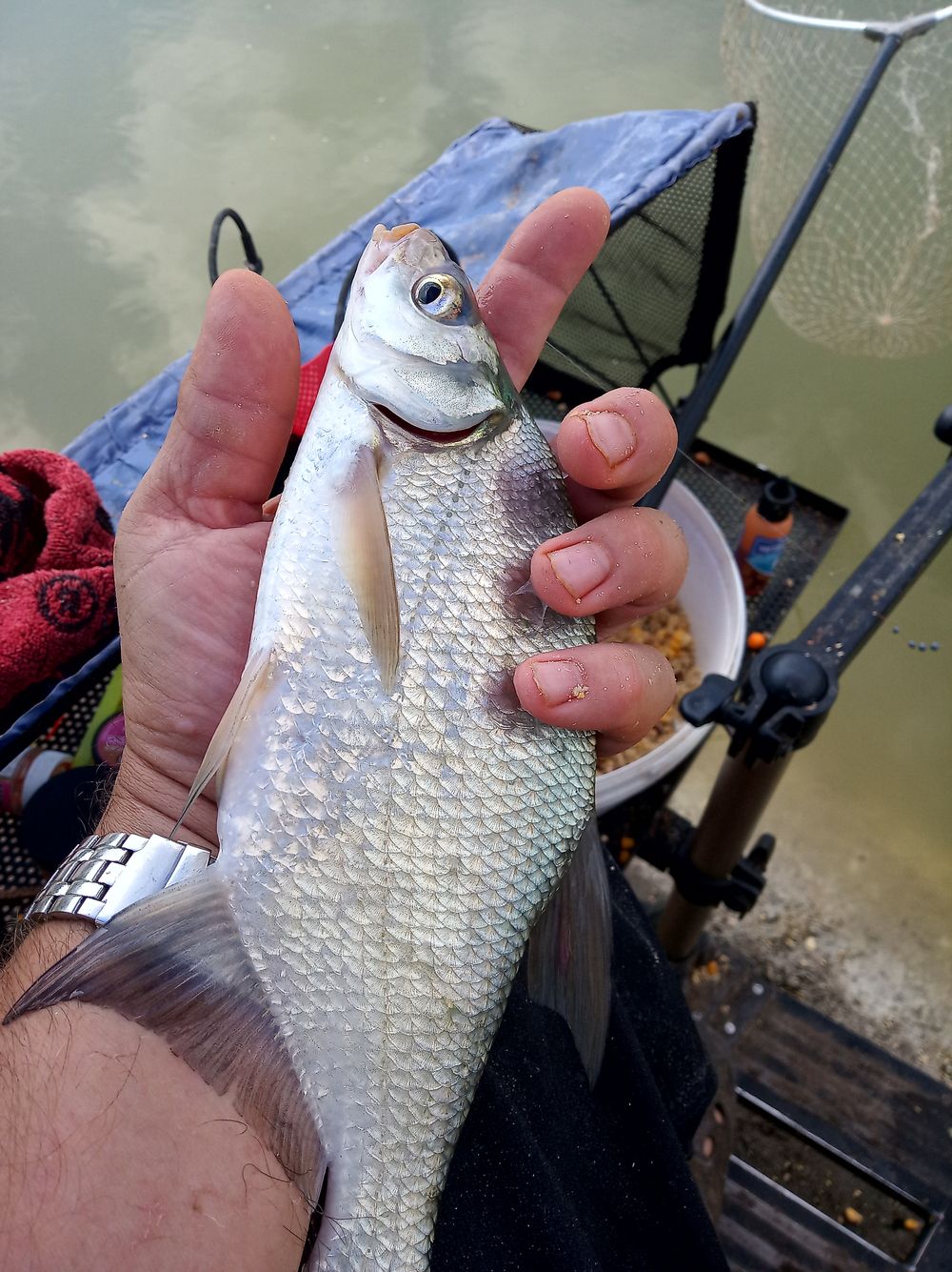 Próbálgatom cserélgetem a csalikat, de nem sikerül eltalálni az ízlést lassan el kell hinnem ma nem esznek és kész. Frici kocsija tűnik fel a parton, örülök kicsit beszélgetünk és jókat röhögünk közben miért is ne kezdene hajolni, most már egy igazi hajlékony feeder botom!! Gyors bevágás, egy pillanatra feljön a nem kicsi hal, jó küzdős fárasztás kezdődik. Beérkezik a nád elé, innentől izgalmas minden, de ahogy élesedik a helyzet a horog kivágódik a halból, nem én nyertem… Visszadobom a felszerelést ahonnan a szökevény ponty jött és máris követi egy szép dévér, végre halas a kezem is.