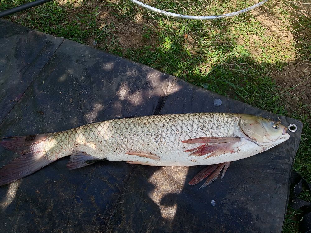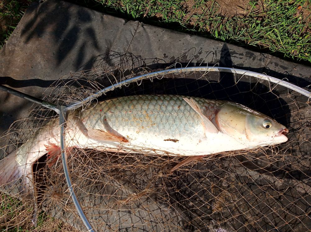 Megint recseg a félredobott botom, most amurt fárasztok, még a szákból is kimenekül egyszer így kétszer szákolt amurt fotózok.