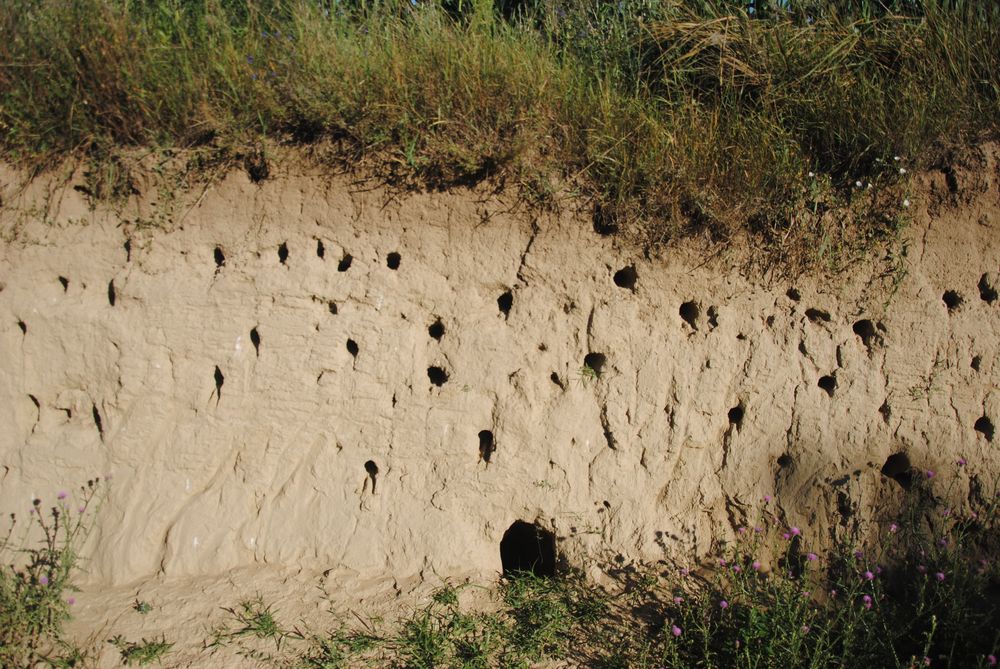Az út szélén csodálatos gyurgyalag telep található ez a legszebb madarunk Magyarországon, legalább öt féle színben pompázik. Meredek löszfal van Csobaj határában és itt bizony egy teljes gyurgyalag kompánia fészkel egész hatalmas populáció, kénytelen voltam megnézni közelről is. Épp csak sikerült röptében elkapni egyet fotóval, de közeli portrét nem engedtek …