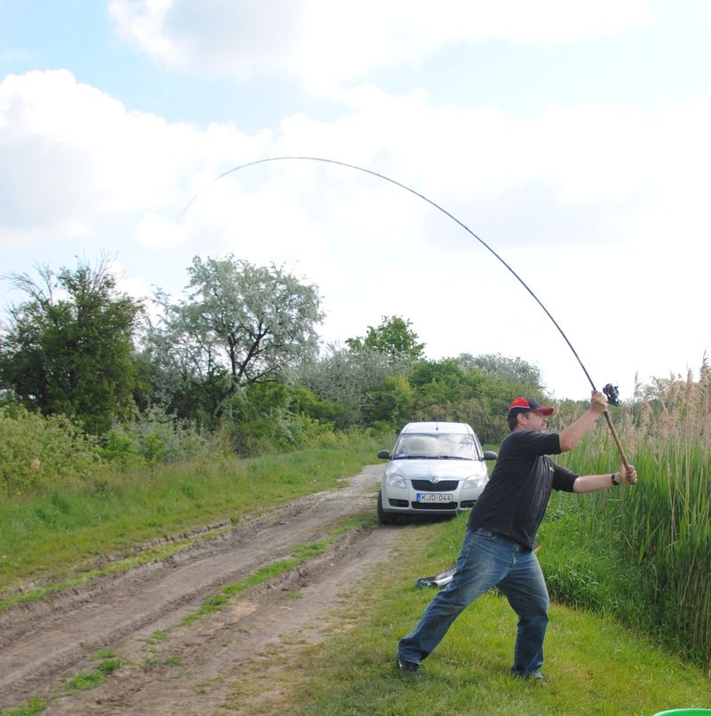 Okos halak vannak itt, bokor alól ki, nyíl egyenesen megcélozni a nádfal sarkát és be a nádszálak közzé! Na ne, kifelé innen, pont jó bot van nálam a Mikado Ultraviolet képes rá, az olyan bot és igazam is van, magam elé húzom és szákolom… Ez nagy csata volt izmos pikkelyes ponty a kezemben.