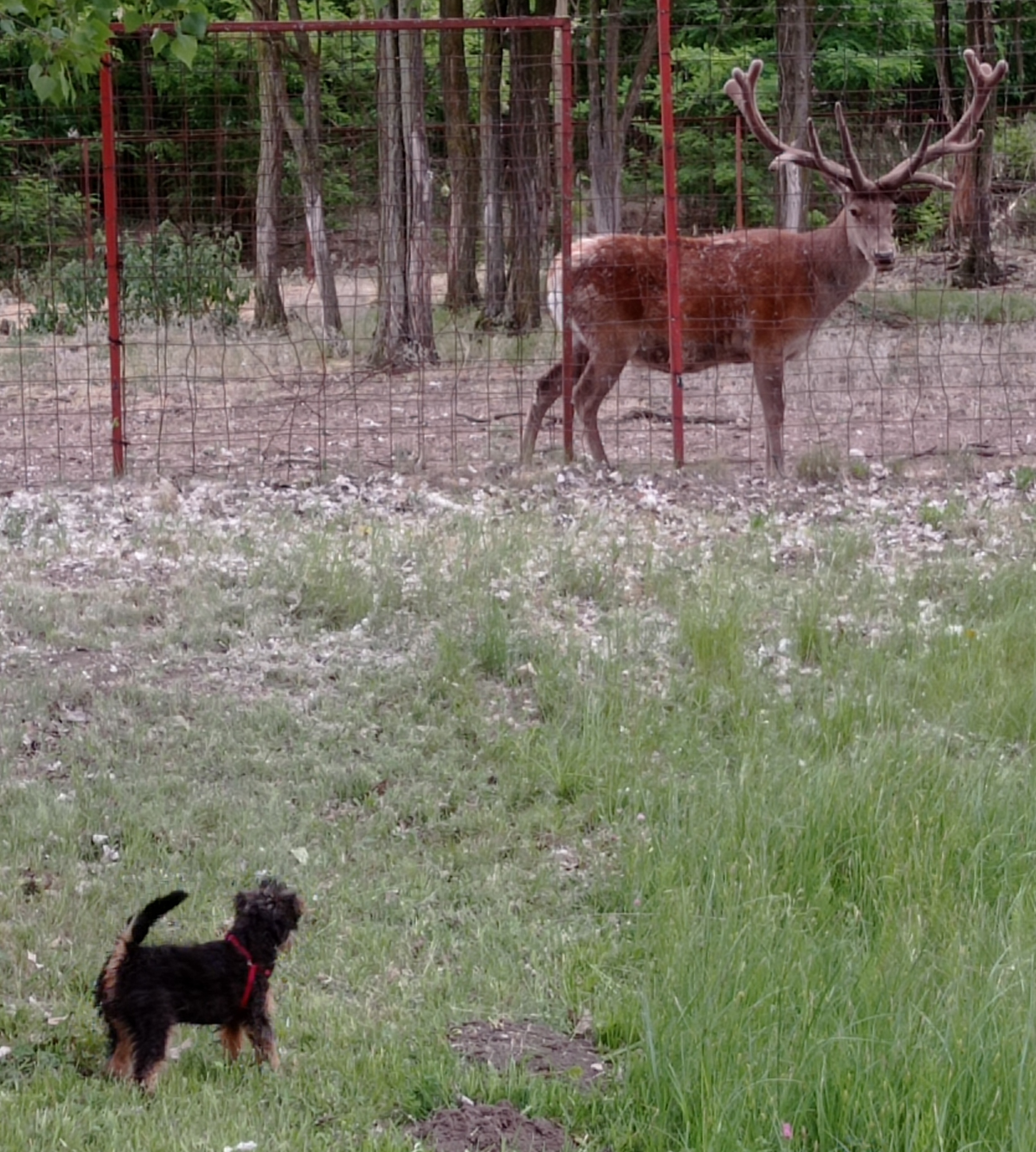 A kiskutya felfedezi a tavat, öröm nézni mennyire vidám, ha jöhet horgászni velem és én is örülök hiszen egy tarka gombócnyi boldogság szökdécsel a fűben. Persze a hatalmas szarvas látványa elég vérfagyasztó számára, de megbarátkoznak előbb-utóbb és kíváncsian szemléli a két teremtmény egymást.