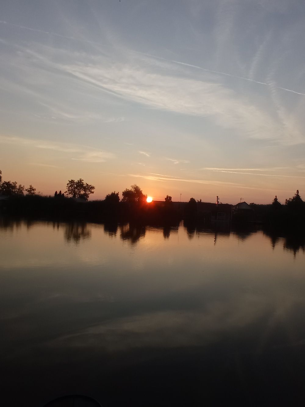 Kapástalan csend következik, a kutya a vadkacsákkal ismerkedik, én meg a napfelkeltét csodálom, pont velünk szembe jön fel és megvilágítja a Kadarcsot.