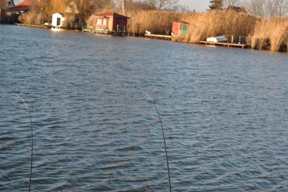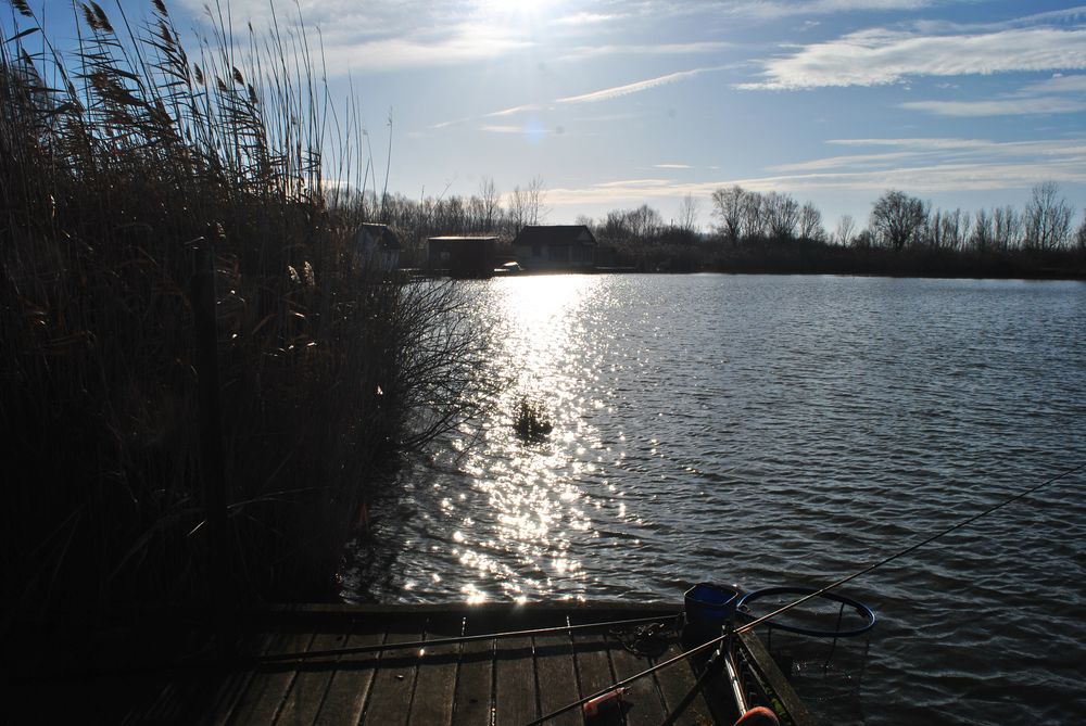 Elég jól hajolnak a fák, gondolom szél lesz, de ahhoz képest a hőfok 10 fok méghozzá plusz, pedig most karácsony van. Hamar a stégnél vagyok a Kadarcsra jöttem, hátha akad egy ponty és megküzdünk egymással, vagy csak levegőzök és fotózom. Tényleg betyáros egy szél fúj, de a ruha sem rossz rajtam szóval etetőt keverek, csalizok, bedobok és keresem a halakat, amiket egyelőre nem is találok sehol.