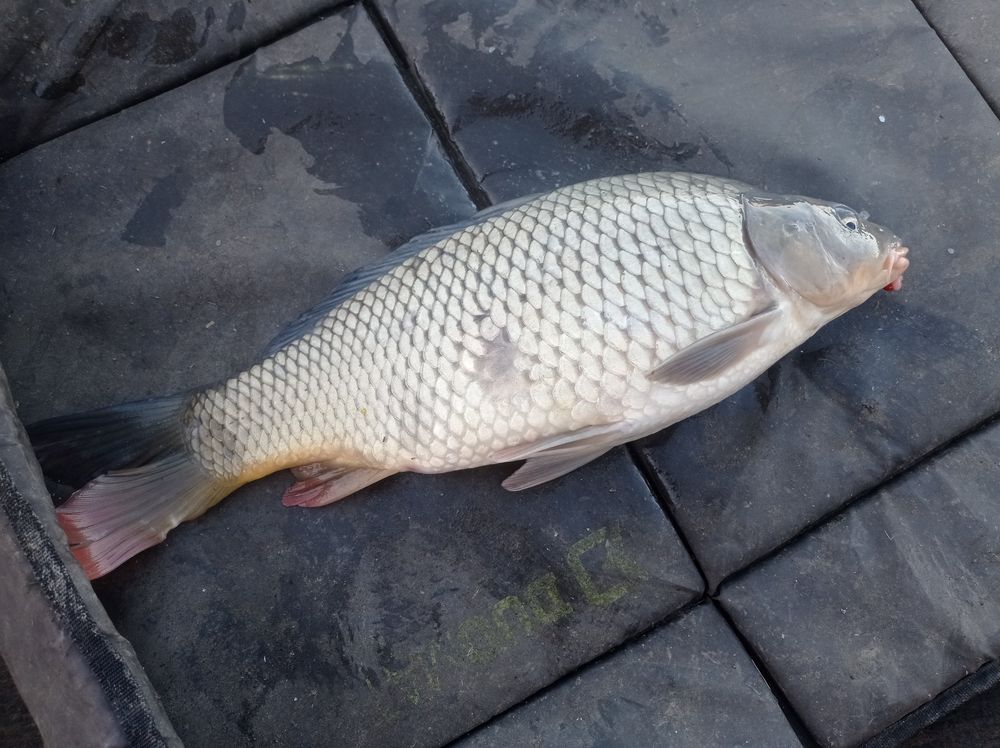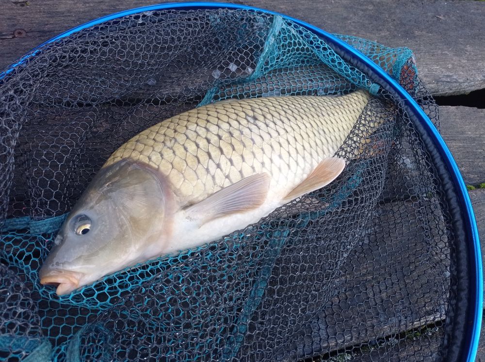 Hamar magamhoz térek az egyik bot bebólint rendesen és be is kell ám vágnom, bár módfelett kicsi horgot használok ma ezért jobb lesz egész finoman fárasztani, nem olyan jól akadhatott az. Jól gondolom, mert a pontyot megszákolom majd a szákban már kis is akad a kicsi horog. A lényeg hogy sikerült. Na szóval karácsony van és halas a kezem, ez jól kezdődik.