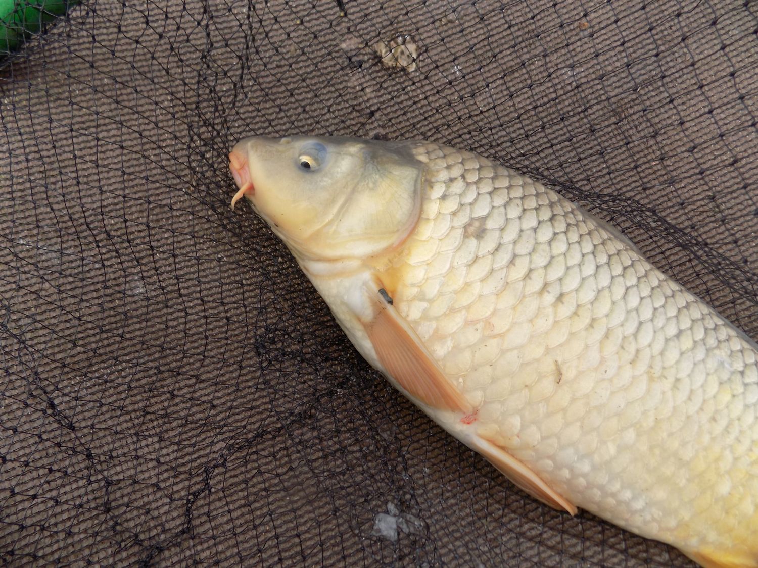 Végre az úszó sétál és elindul a saját útjára de odaemelek neki. Egy ponty a bűnös, persze nem a legöregebb korosztályból, egy ifjonc akadt fent a vékony Owner horgon. Legalább megvan az első hal a rakóval és elmondanám, hogy jó ezzel kis röviddel is rakózni. A gumi is engedelmes és nem kemény azzal is elégedett vagyok, a bot meg mint egy sétapálca kellemesen szokjuk egymást.