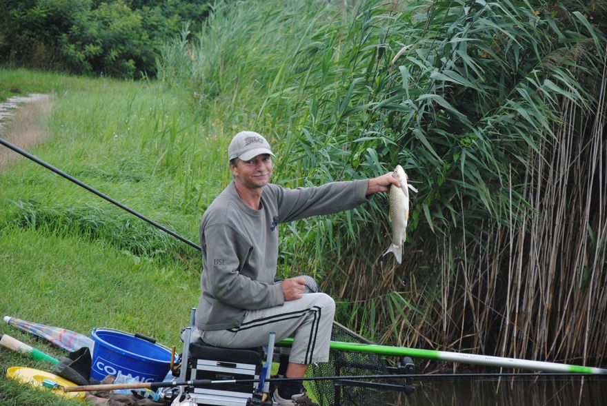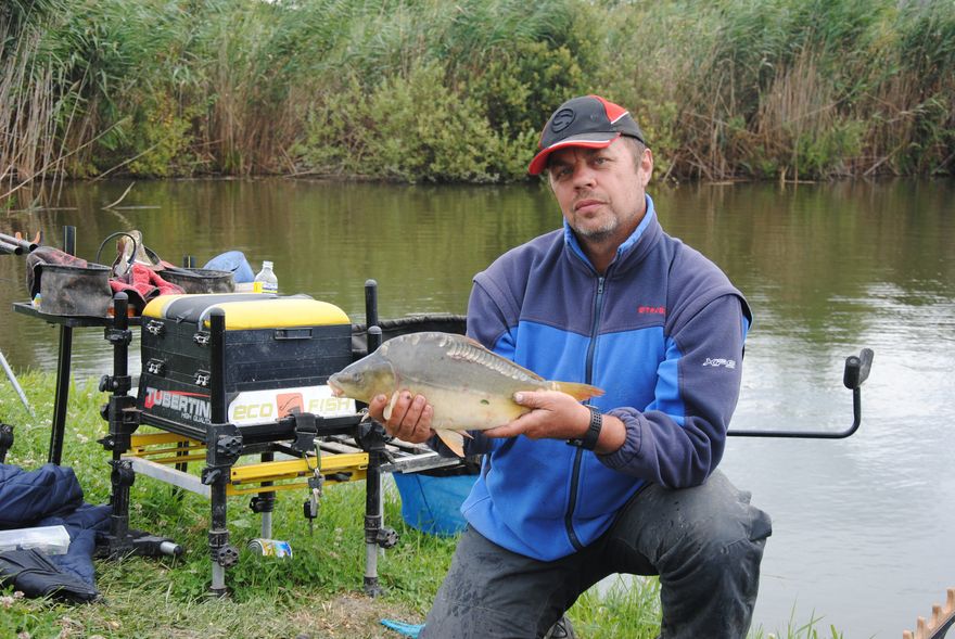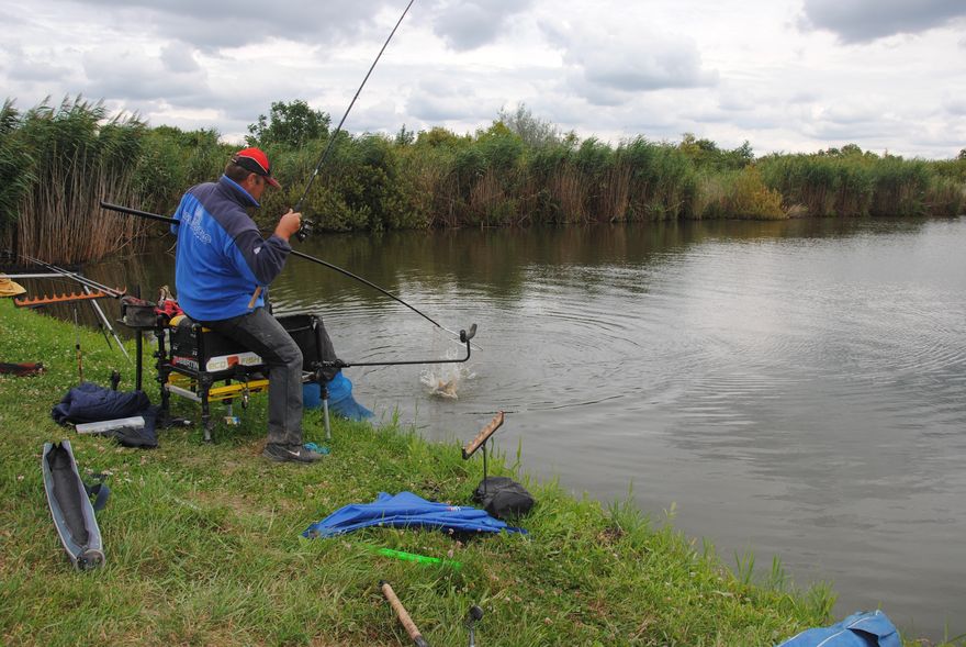 Megérkezünk és kezdődjék a peca, Zoli a sarokba ül ahol lehet rakózni, matchezni, feederezni szinte bármit, van nádfal is, bokor is bőven. Én gondoltam az egész napot végig rakózom, legjobban ezt szeretem művelni. Jól kezdődik a reggel a nagy távolságra eldobott feeder bot egymás után fog pontyokat.