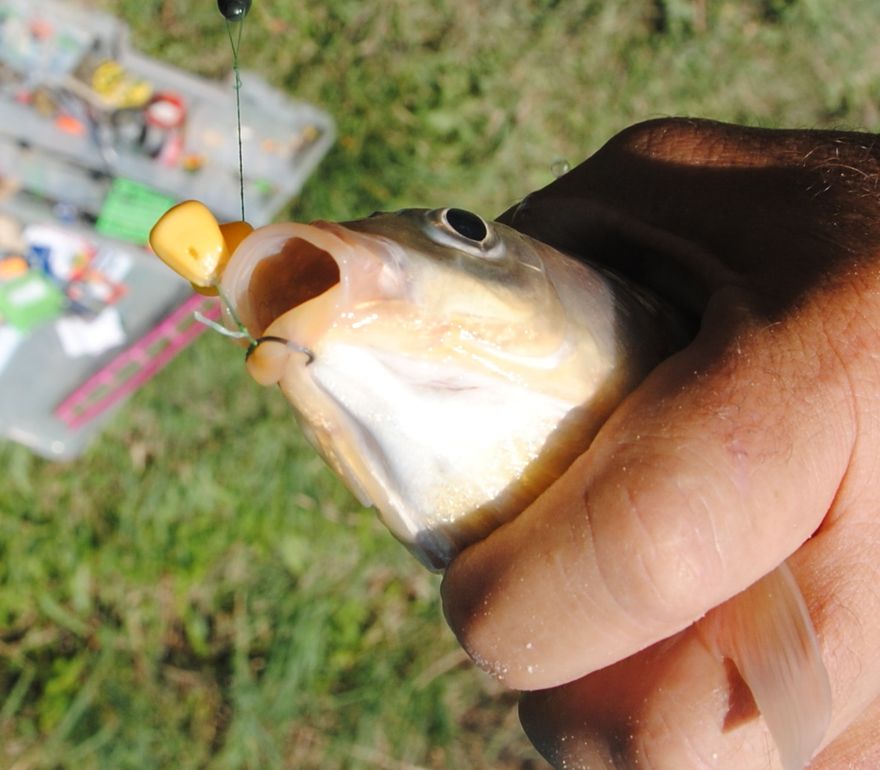 Ez igen, majdnem azt hittem pontyot fogtam. Mehet vissza az úszó a helyére és csörgetem kukoricával a helyet, nem áll le a csúzli mert jelezni kell itt vagyok, az amuroknak ez a titkuk, az állandó kaja.
