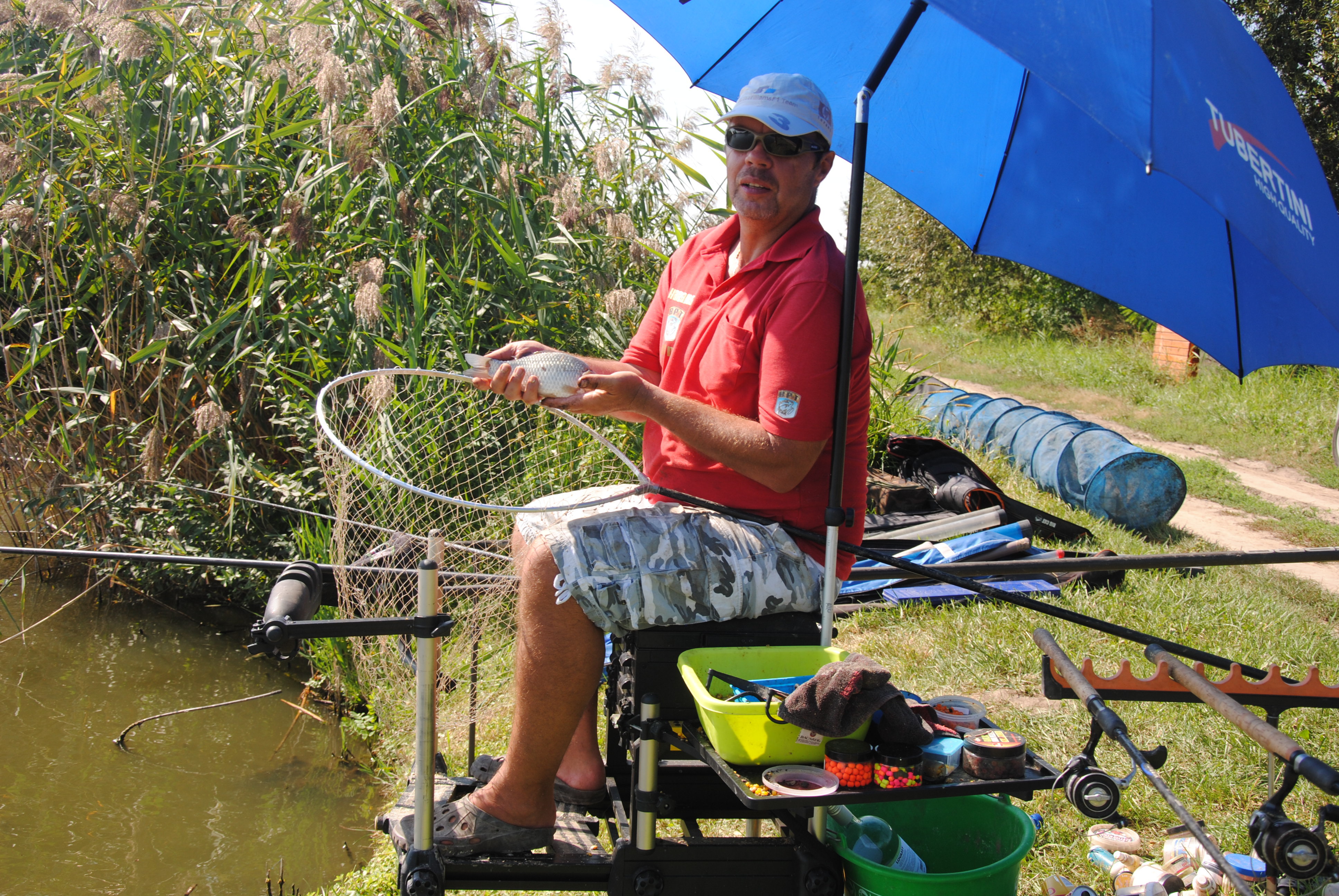 Akkor néhány különlegesség, amit a Tubertini cég ad a horgásznak, meglepetés gyanánt, ha eddig nem lett volna elég. Az egyik hátsó lábba ernyőt lehet dugni, ami jobban tarja bármely ernyő tartónál, egy ilyen applikáció be van építve a lábba. Köszönet, remek…