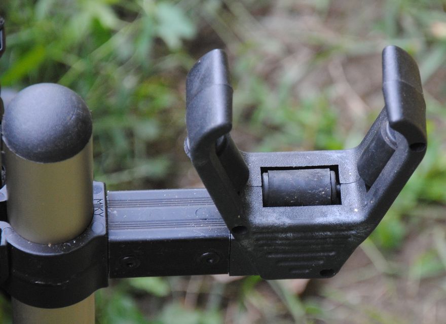 A tartozékokat csak felülről lehet rádugni a lábra? Ugyan, dehogy… Simán oldalról ráugrasztjuk a pipát és már rögzíthetem is így:
