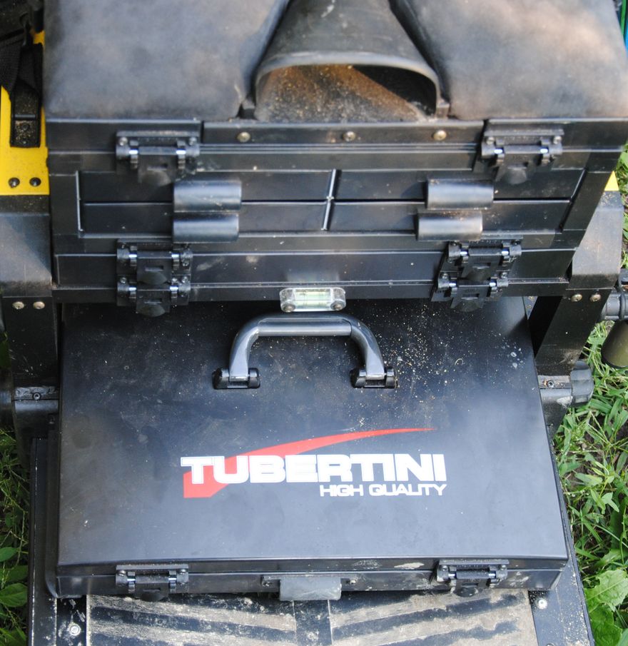 Lássuk mit kap egy horgász a legújabb Tubertini ládától? Haladjunk felülről lefelé és nézzük csak mi van a plüss huzatos zselés ülőfelület alatt?