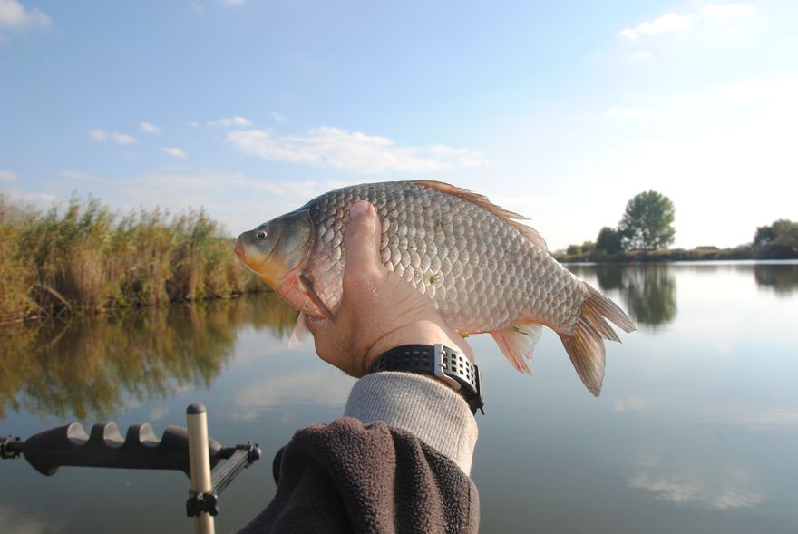 A hagyományos feeder felszerelés teljesen jó ma, egyszerűen elhajlik a spicc és lehet fárasztani nagy kárászokat, a fék is szól akkorák. Nem is gondoltam volna, hogy az élő csalit ilyen mértékben felül tudja írni, egy jól megválasztott kitűnő minőségű pellet, pedig igen. Most is ez egész bot elindul és egy pontyot fárasztok, kellemes meglepetés mára. Óvatos szákolás és egy őszi mosoly a részemről, köszönöm Kadarcs…