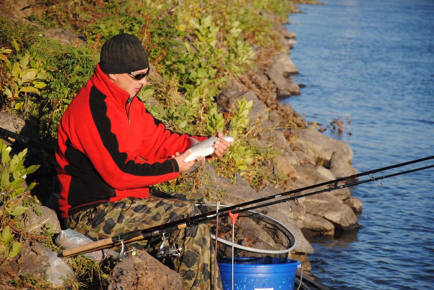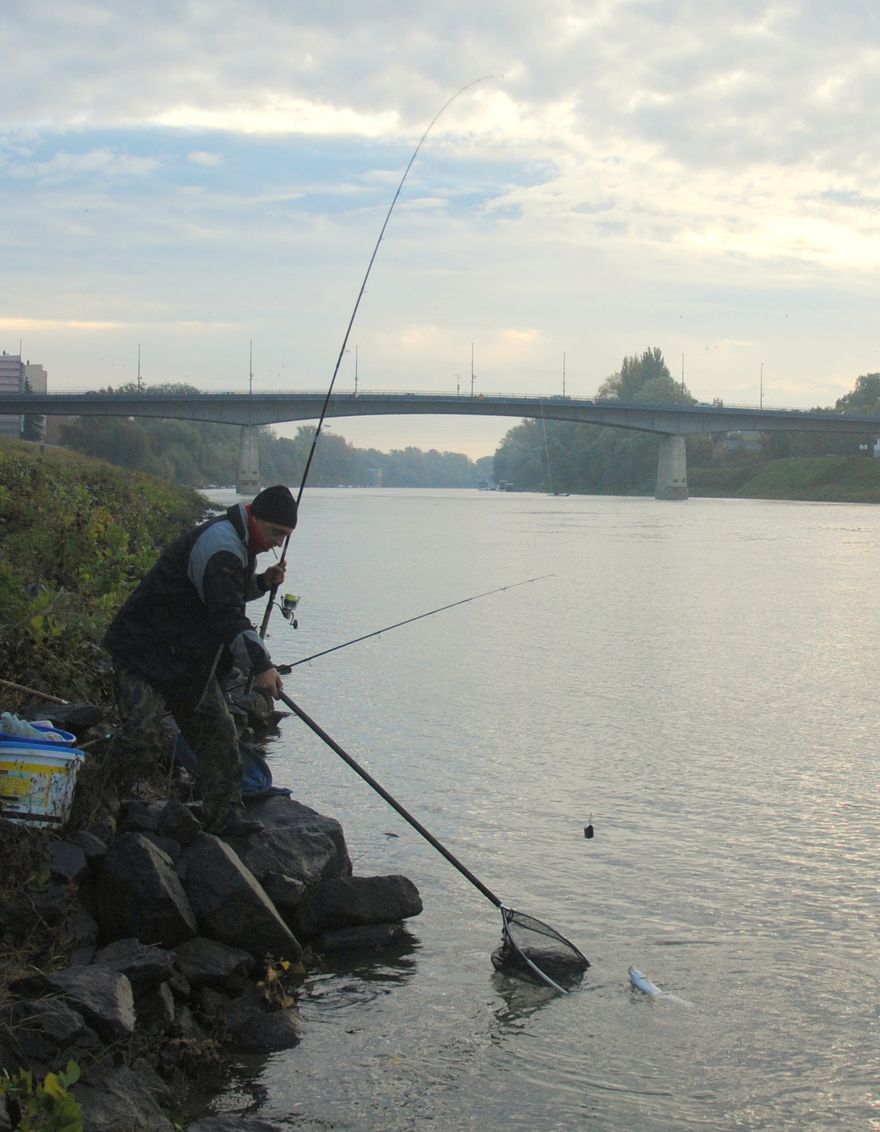 Kezdődjék a peca, amit már Peti meg is kezdett, egyből folyami harcsát fog, aztán kispontyot, aztán márnát, gyorsan megy itt kapás. Alig jut el a kezem Nikonig, már három hal megfogva.