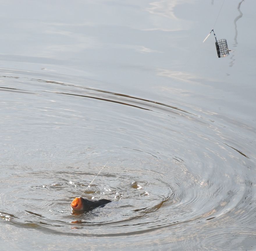 Kíváncsiságból elkezdem cserélgetni a pelleteket, pop-upokat a hagyományos feeder kosaras szerelésemen, bár eddig is fogtam kis keszeget vele, de hátha eltalálok valamit az etetésemen? Egy csapásra beindul valami, egy bizonyos, lebegő, narancssárga csalit eszik a szép méretes dévér, de csak azt és folyamatosan.
