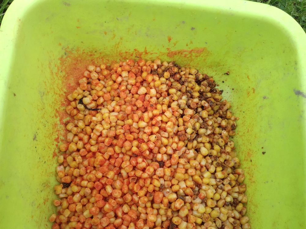 Lássunk is neki, először is kukorica konzervek kerülnek nyitásra és elkezdődik az alapozás. Jó nagy mennyiséget kapnak a halak csalogatónak és majd arra horgászunk rá.