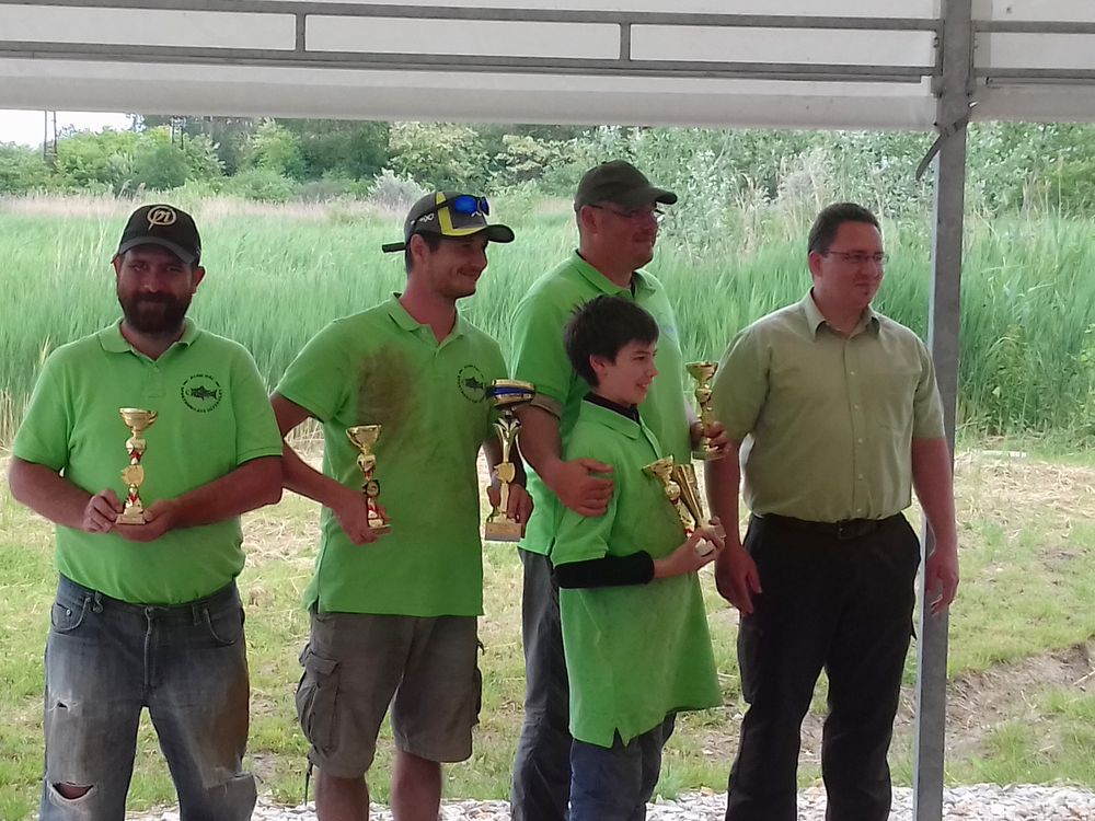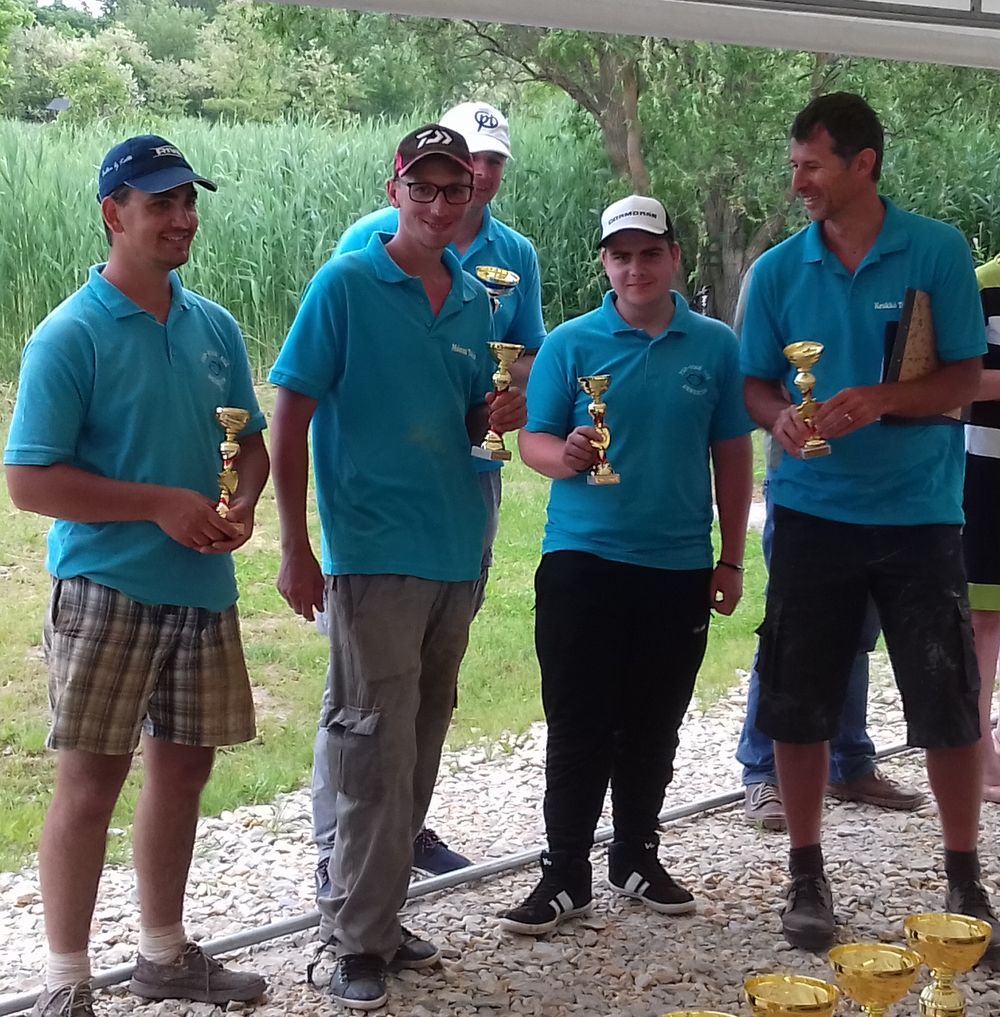 A kupák kiosztásra kerültek, majd egy finom ebéd lekötötte a fáradt horgászok figyelmét. Mi is elégedetten ültünk egymás mellett és örömmel konstatáltuk, ebben az erős mezőnyben 7. helyen zárt csapatunk. Még készítünk egy verseny utáni csapatfotót, mert hát az kell amúgy meg nekem ez a legjobb csapat ma: