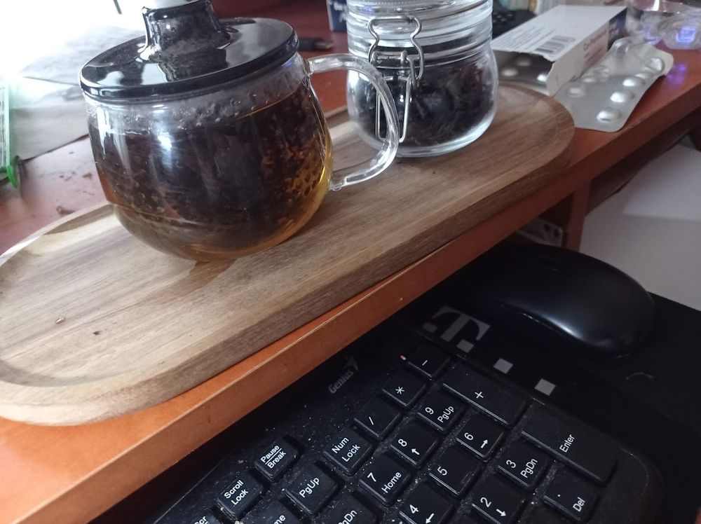 Halk kattanás a szobában, a vízforraló kikapcsol és lassan öntöm a forró vizet a teafűre és kellemes illat lengi be a szobát.